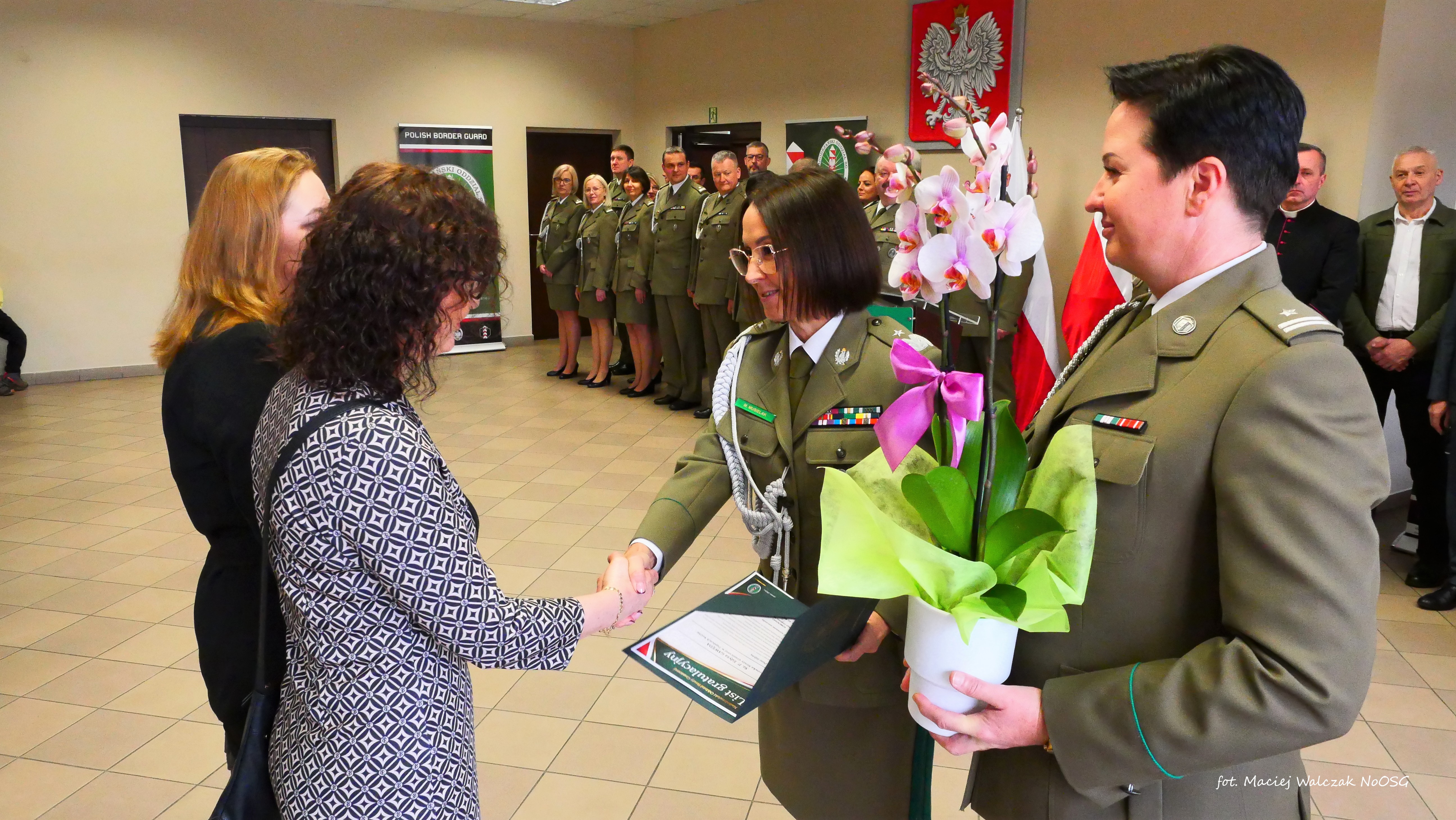 Podczas uroczystości uhonorowano również dwie Panie zatrudnione w Placówce SG w Tuplicach, które obchodziła jubileusze 25 i 30-lecia pracy zawodowej. Z tej okazji odebrały z rąk przełożonych gratulacje, wyrazy uznania oraz pamiątkowe upominki. Ich wieloletnia praca, zaangażowanie i lojalność wobec służby zostały docenione przez kierownictwo oraz współpracowników.