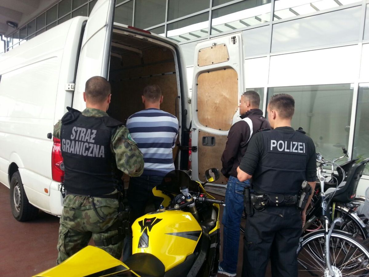 Polsko – niemiecki patrol pełnił służbę na drodze krajowej nr 2 niedaleko byłego przejścia granicznego w Świecku. Do kontroli funkcjonariusze zatrzymali ciężarowego Volkswagena, którym dwaj Polacy wrócili do Polski z Europy Zachodniej. W części ładunkowej pojazdu ujawniono motocykl Suzuki GSX oraz osiem rowerów.