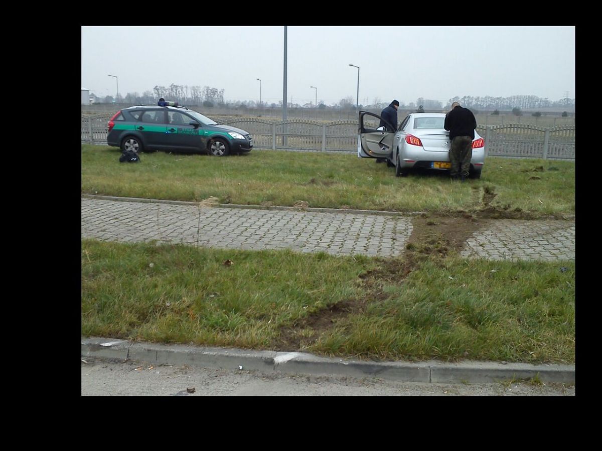 Po wjechaniu w wąską drogę w okolicach strefy ekonomicznej w Słubicach stracił orientację między zabudowaniami, a silne uderzenie w krawężnik doprowadziło do uszkodzenia koła i unieruchomienia pojazdu.