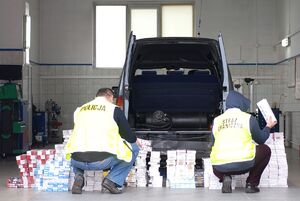 Funkcjonariusze z Placówki SG w Kaliszu, działając wspólnie z policjantami i inspektorami Urzędu Kontroli Skarbowej, nielegalny towar ujawnili w Koninie. Zabezpieczono 7 worków (123 kg) krajanki tytoniowej wartej 45 tys. zł oraz prawie 100 tysięcy sztuk papierosów różnych marek, których wartość rynkową oszacowano na ponad 102 tys. zł. Papierosy znajdowały się w kontrolowanym samochodzie w specjalnie skonstruowanym schowku.