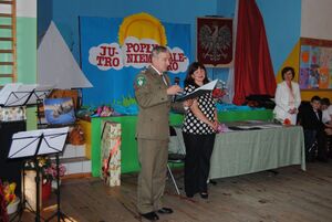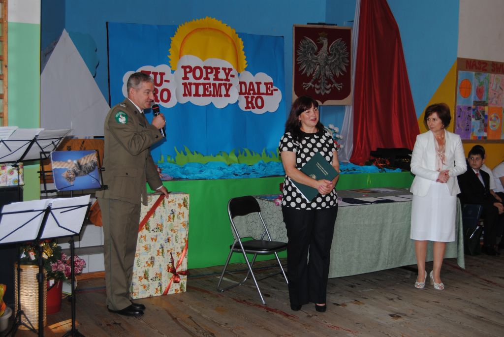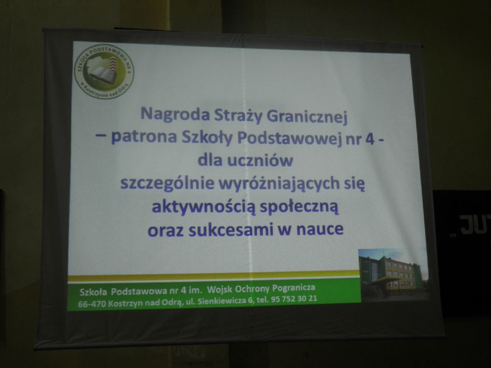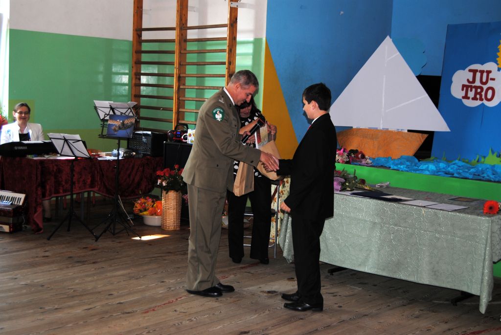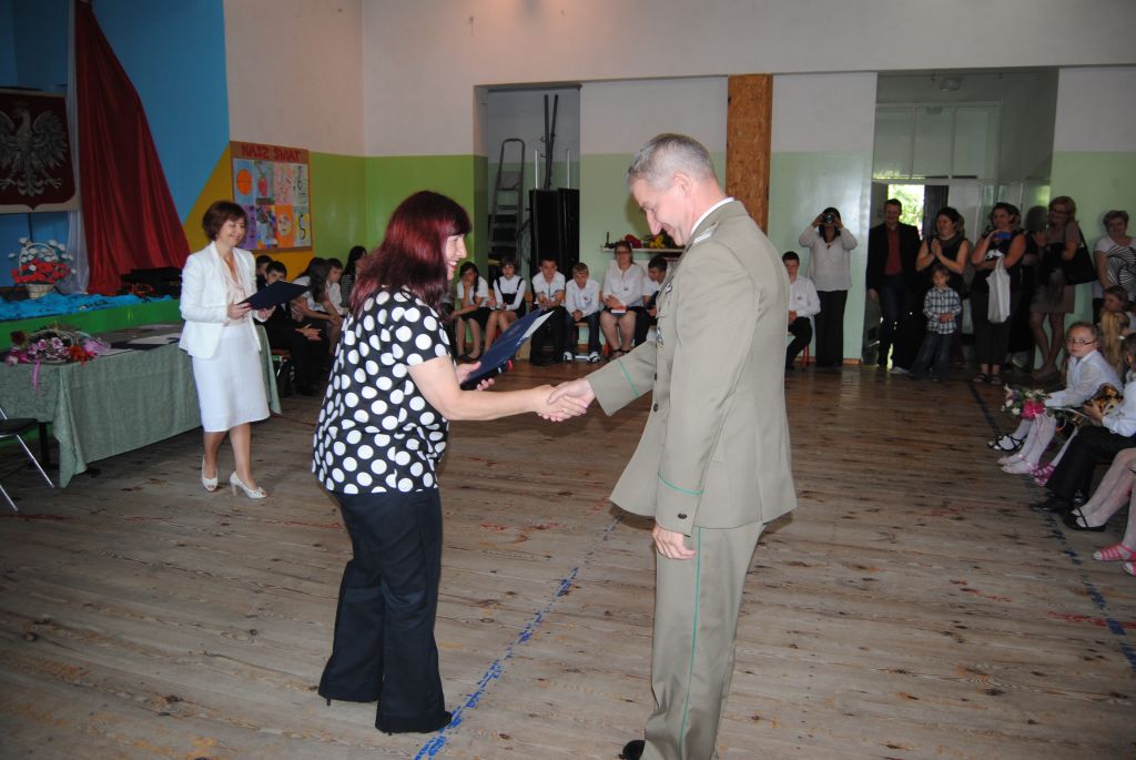 Na zaproszenie Dyrektor szkoły Pani Katarzyny Dudzic - Syty w uroczystościach udział wziął Komendant Nadodrzańskiego Oddziału Straży Granicznej płk SG Andrzej Kamiński, który najlepszym uczniom 6 - tych klas wręczył nagrody za wysokie wyniki w nauce.
