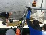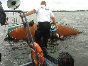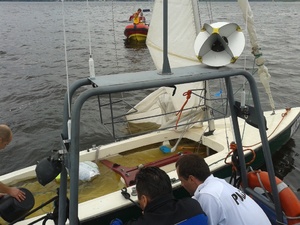 14.07.2013r. funkcjonariusze z Placówki SG w Szczecinie Porcie oraz Komendy Miejskiej Policji w Szczecinie z Referatu Wodnego w trakcie wspólnych działań prewencyjno -porządkowych na terenie wód portu Szczecin podjęli akcję ratowniczą. Do zdarzenia doszło w godzinach popołudniowych, funkcjonariusze zauważyli przewrócony jacht a w pobliżu niego 3 osoby wzywające pomocy. Jacht WILGA bandery RP znajdował się w odległości 2 km od linii brzegowej na Jeziorze Dąbie. Funkcjonariusze po przybyciu na miejsce niezwłocznie podjęli na pokład łodzi służbowej Straży Granicznej SG - 019 członków załogi, którym udzielono niezbędnej pomocy. Jacht został postawiony i przetransportowany do brzegu.
