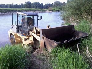 Funkcjonariusze Straży Granicznej z Placówki w Zgorzelcu ujawnili w Koźlicach w nurcie rzeki porzuconą koparko - ładowarkę. Od strony niemieckiej uzyskali informację, że z jednej z tamtejszych firm ją skradziono. Najprawdopodobniej sprawca kradzieży zdecydował się na przeprawę ciężkim sprzętem przez Nysę, ale wyjeżdżając na brzeg po polskiej stronie utknął i porzucił koparkę. Wartość jej szacowana jest na około 100 000 zł.