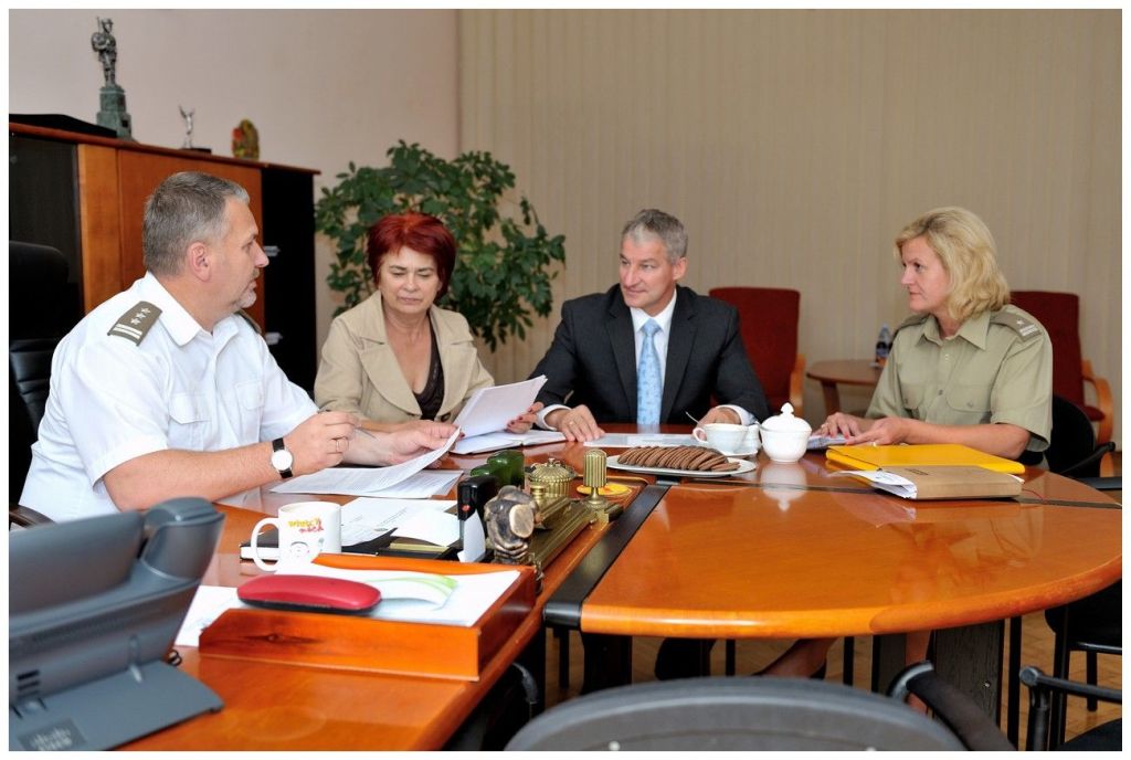 Celem spotkania z Komendantem SOSG płk. SG Markiem Waszczukiem, Głównym Księgowym oraz przedstawicielem Wydziału Techniki i Zaopatrzenia SOSG było omówienie realizacji harmonogramu związanego z likwidacją Sudeckiego Oddziału Straży Granicznej.