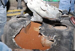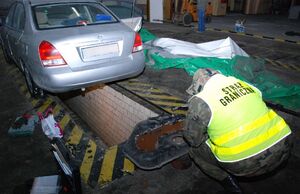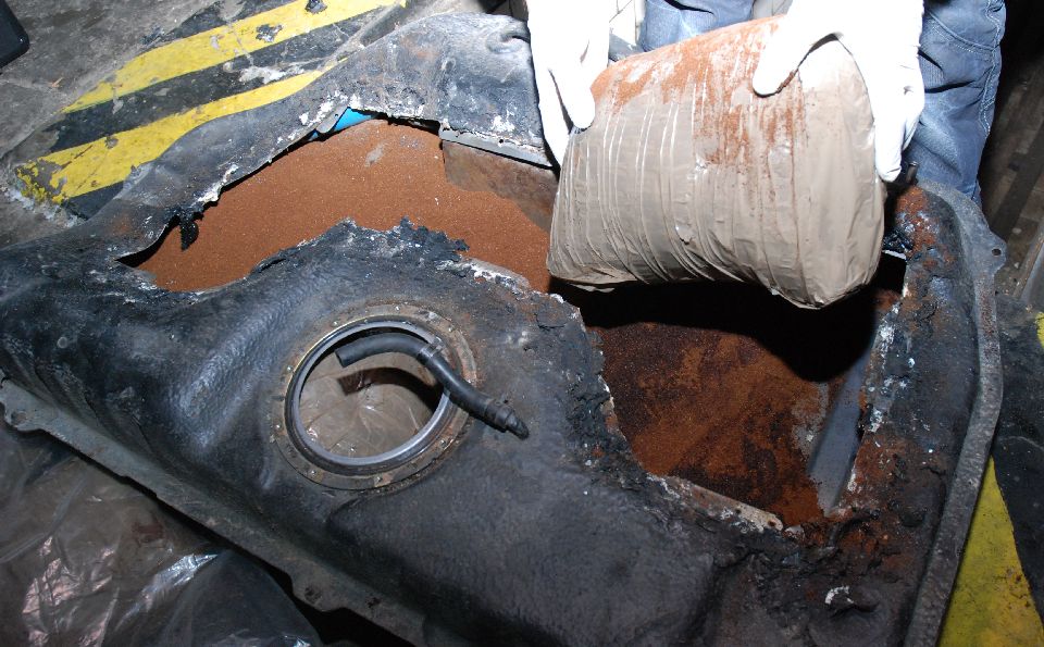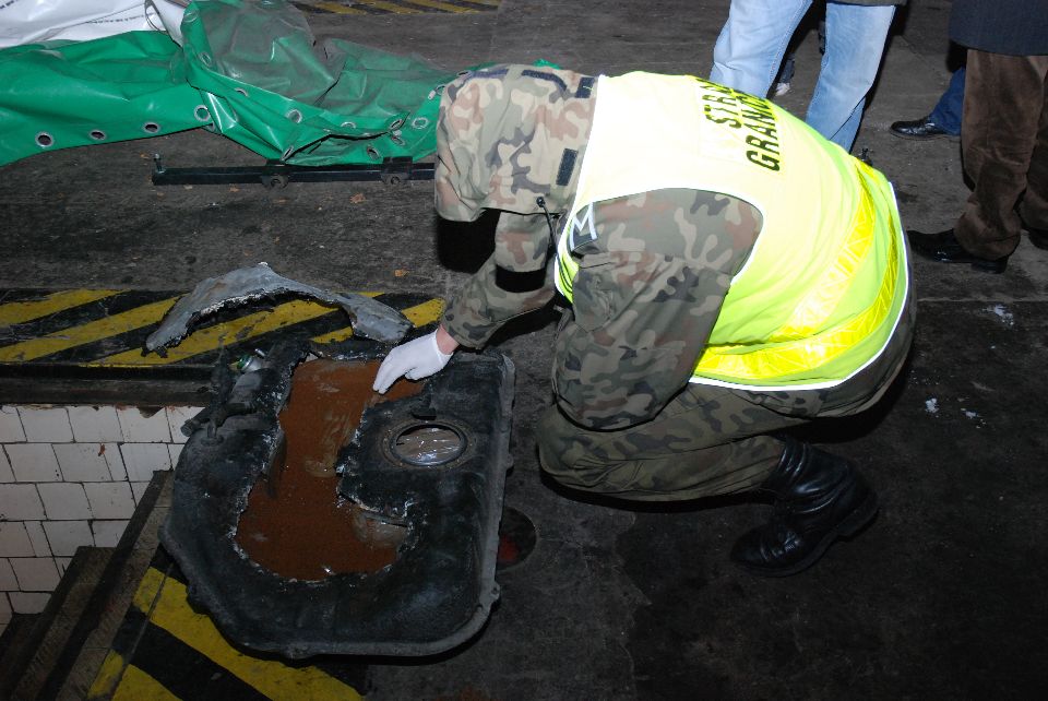14.02.2012 r. podczas rutynowej kontroli drogowej w m. Kołbaskowo samochodu osobowego marki Hyunadi na polskich numerach rejestracyjnych pies służbowy do wykrywania narkotyków oznaczył tylna część samochodu w sposób sugerujący obecność substancji narkotycznych. Ponieważ w warunkach drogowych nie było możliwości dokładnego przejrzenia pojazdu, skierowano go wraz z kierowcą do Placówki SG w Szczecinie. Tutaj korzystając z pojazdu specjalnego prześwietlono Hyundaia. Uzyskano potwierdzenie możliwości ukrycia w zbiorniku paliwa nieznanych przedmiotów. Podjęto decyzję o demontażu zbiornika. Nosił on ślady ingerencji zewnętrznej.