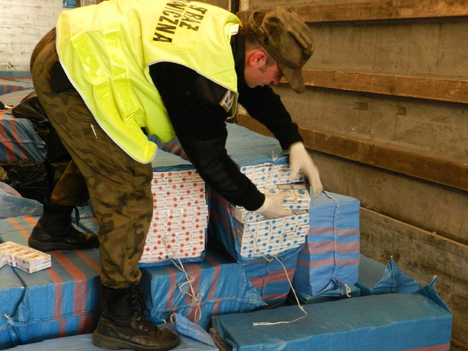 Skierowany do kontroli zestaw ciężarowy na ukraińskich numerach rejestracyjnych miał być pusty - tak wynikało z dokumentacji, którą przy sobie miał kierowca pojazdu. Jechał po ładunek do Niemiec. Jednakże po otwarciu naczepy funkcjonariusze Straży Granicznej ujawnili ponad 1 700 000 sztuk papierosów w paczkach różnych marek z ukraińską akcyzą. Papierosy skrzętnie zapakowano do worków jutowych i foliowych. Worki leżały luzem, co rzadko zdarza się w takich transportach. Zazwyczaj mamy do czynienia z papierosami bez akcyzy ukrytymi w różnych towarach.