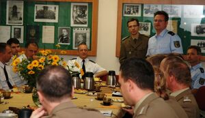 5 lipca 2012 w pomieszczeniach Archiwum Straży Granicznej w Szczecinie Komendant Placówki Straży Granicznej w Szczecinie Pan mjr SG Zbigniew Włodarczyk w związku z zakończeniem przedsięwzięć realizowanych przez placówkę samodzielnie i we współdziałaniu z innymi organami w ramach EURO 2012 przeprowadził spotkanie podsumowujące ww. działania. Wśród zaproszonych gości znajdowali się między innymi przedstawiciele polskich i niemieckich służb mundurowych, Zachodniopomorskiego Urzędu Wojewódzkiego, przedstawiciele terytorialnych organów samorządowych oraz Naczelnik Wydziału Granicznego Nadodrzańskiego Oddziału Straży Granicznej Pan mjr SG Jarosław Żaguń.