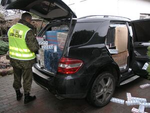 Papierosy z białoruską akcyzą ujawnili 7 listopada w samochodzie osobowym i w garażu na jednej z lubuskich posesji funkcjonariusze Straży Granicznej z Placówki w Tuplicach. Papierosy zapakowane w kartony i worki prawdopodobnie przygotowano do dalszego transportu. Łącznie zabezpieczyliśmy niemalże pół miliona papierosów o wartości około 250 000 zł. W trakcie prowadzonych czynności zatrzymano dwóch Polaków, w tym właściciela pojazdu. Po złożeniu wyjaśnień osoby te zwolniono.