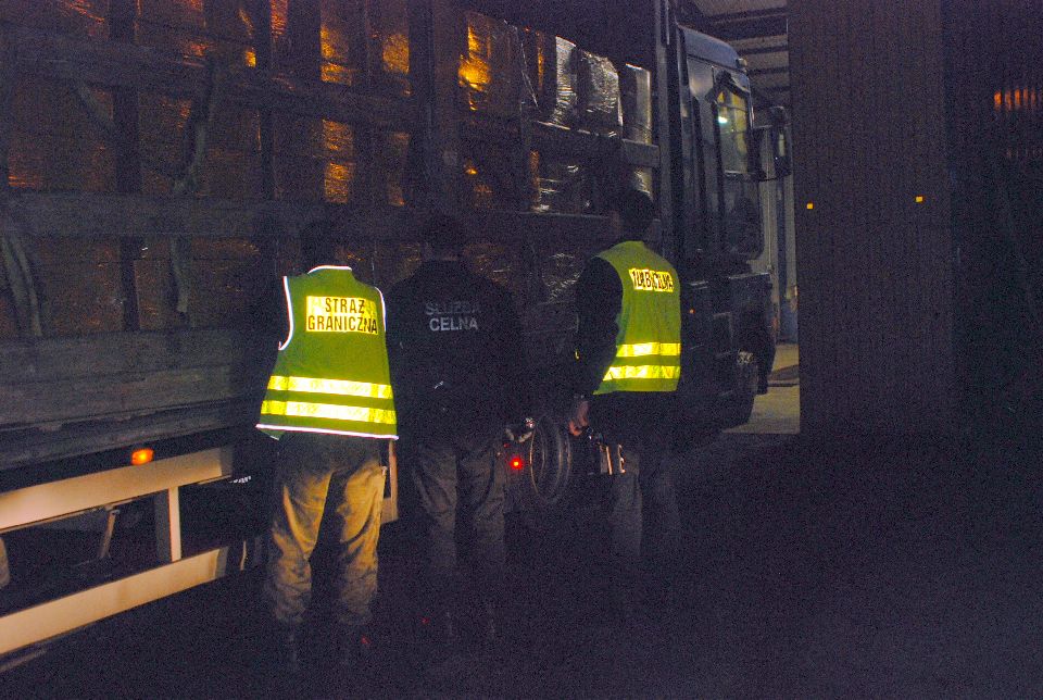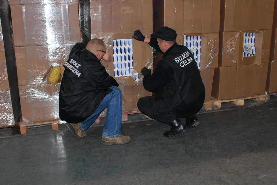 20.11, krótko po północy funkcjonariusze Straży Granicznej i Służby Celnej udaremnili wywóz z Polski 3 milionów sztuk papierosów bez polskich znaków akcyzy skarbowej. Skarb państwa mógł stracić tylko na tym jednym transporcie niemalże 2,4 miliony złotych. Podczas wspólnych działań prowadzonych w ramach ochrony międzynarodowych szlaków komunikacyjnych w okolicach Zielonej Góry patrol funkcjonariuszy Straży Granicznej z Placówki w Zielonej Górze – Babimoście i funkcjonariuszy Służby Celnej z Grupy Mobilnej w Olszynie, w jednym z wytypowanych tej nocy do kontroli samochodów ciężarowych ujawnił 3 miliony sztuk papierosów bez polskich znaków akcyzy skarbowej, które przewożone były na paletach pomiędzy kartonami z makaronem. Ujawniony nielegalny towar przewieźliśmy do składu celnego w Olszynie i tam rozpoczęło się dokładne liczenie. Również to w zakresie strat jakie poniósł skarb państwa. Wartość papierosów i uszczupleń celno - podatkowych to niemalże 2 400 000 zł. Kierowca samochodu został zatrzymany do wyjaśnienia.