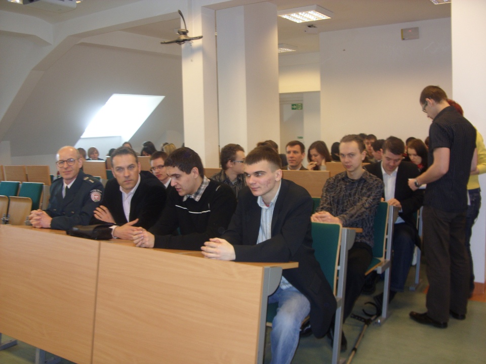 Na zaproszenie Studenckiego Koła Nauk Prawnych "K-LEX" Państwowej Wyższej Szkoły Zawodowej w Gorzowie Wlkp. Naczelnik Wydziału ds. Cudzoziemców wziął czynny udział w konferencji nt.: "Działania i uprawnienia Straży Granicznej, Policji oraz Służby Celnej wobec obywateli Unii Europejskiej i państw trzecich na obszarze Strefy Schengen". Wśród zaproszonych osób byli również uczniowie szkół ponadgimnazjalnych. Wygłoszona przez mjr SG Piotra Perszke prelekcja przyjęta została z dużym zainteresowaniem.