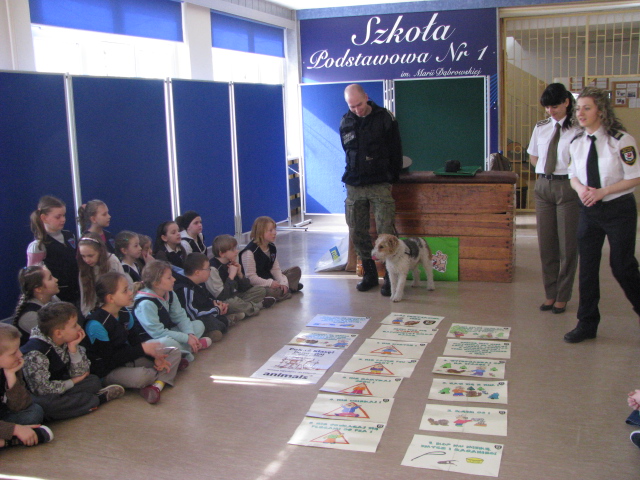 W dniach 16 – 19 i 22 – 24 marca bieżącego roku funkcjonariusze Placówki SG w Szczecinie w ramach programu „Bezpieczna gmina” wzięli udział w zajęciach edukacyjno – profilaktycznych pod hasłem „Mój przyjaciel pies”. Inicjatorem przedsięwzięcia była Straż Miejska z Gryfina. Podstawowym celem zajęć było uświadomienie dzieciom jak należy traktować udomowione zwierzęta, przedstawienie uczniom ich obowiązków wynikających z posiadania własnego psa, zwrócenie ich uwagi na niebezpieczeństwa wynikające ze złego zachowania się w przypadku spotkania obcego psa oraz utrwalenie zdobytej wiedzy poprzez ćwiczenia praktyczne.