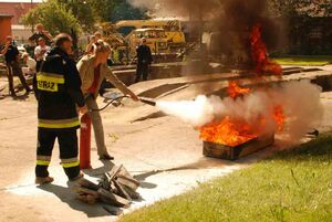 Według przyjętego scenariusza, w budynku Placówki wybuchł pożar, ogłoszono alarm pożarowy, powiadomiono właściwe służby, pożar rozprzestrzenił się na sąsiednie pomieszczenia, ewakuowano ludzi z budynku, w wyniku skutecznej i profesjonalnej akcji polskich i niemieckich strażaków pożar ugaszono. Na koniec niektórzy z nas mieli okazję osobiście ugasić niewielki pożar przy użyciu podręcznego sprzętu gaśniczego.