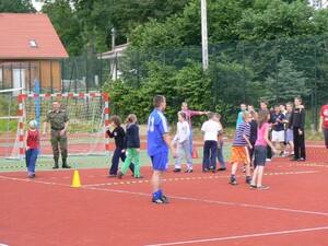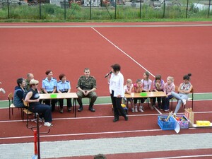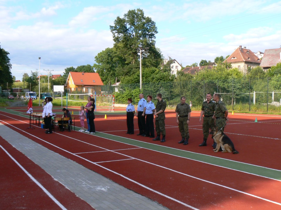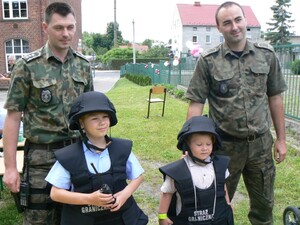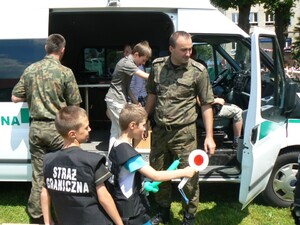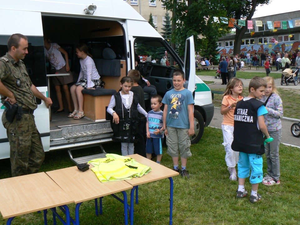 Zaprezentowaliśmy także sprzęt służbowy, służący do zatrzymywania i kontroli pojazdów. Oprócz funkcjonariuszy SG w festynie udział wzięli również funkcjonariusze Komendy Powiatowej Policji w Zgorzelcu i w ramach wspólnego udziału obu służb w tej zabawie odbyły się rozgrywki w piłce nożnej o puchar Pol Misia, maskotki policyjnej, a także quiz na temat bezpiecznego zachowania się podczas wakacji i nad wodą. Było mnóstwo dobrej zabawy i humoru. Natomiast 24 czerwca 2010 roku zostaliśmy przez Szkołę Podstawową nr 2 w Zgorzelcu zaproszeni na festyn rodzinny pod hasłem „Nie piję, nie palę i tym się właśnie chwalę”. W trakcie festynu przedstawiliśmy dzieciom i ich rodzicom specyfikę naszego zawodu, jakie mamy zadania, czym się zajmujemy na co dzień. Największe zainteresowanie wzbudził nasz pojazd służbowy Schengenbus. Dzieci koniecznie chciały posiedzieć „za kierownicą”, chętnie zadawały pytania dotyczące Schengenbusa, do czego on służy i czy „fajnie się nim jeździ”. Dzieci a nawet dorośli przymierzali przywiezione przez nas hełmy i kamizelki taktyczne i kuloodporne. Najmłodsi mogli kolorować malowanki i robić odciski palców. I tutaj dopisał świetny humor i ładna pogoda.