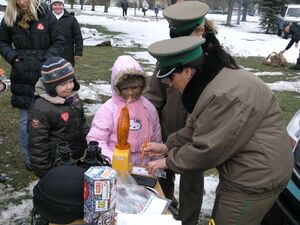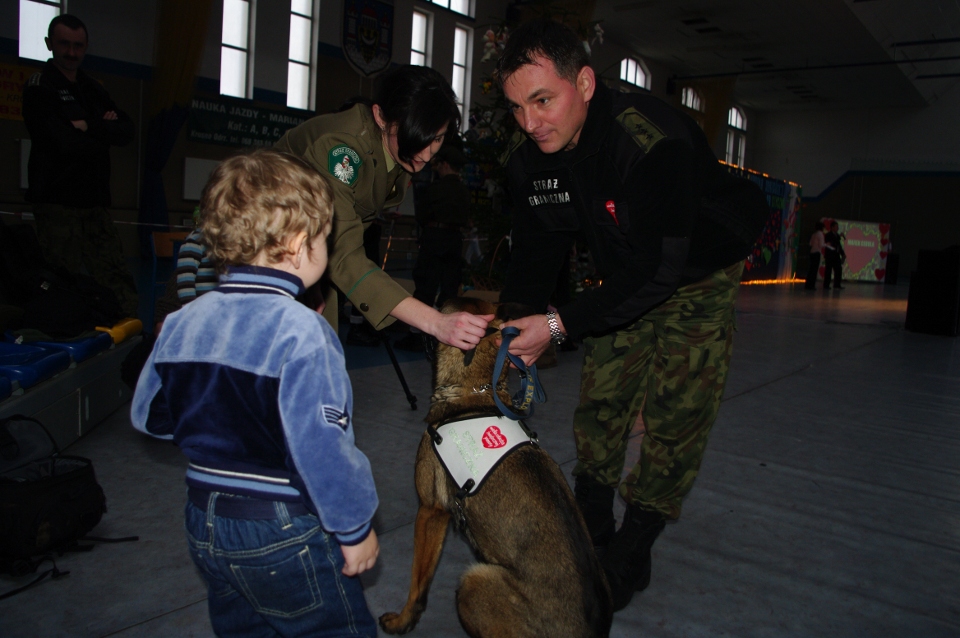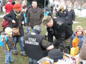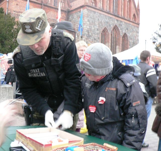 Funkcjonariusze Placówki Straży Granicznej w Zielonej Górze - Babimoście wspierali swoją obecnością Orkiestrę grającą w Gubinie. Pokaz sprzętu, prezentacja umiejętności psów specjalistycznych oraz kolorowe niespodzianki dla dzieci jak zawsze wzbudzały zainteresowanie wśród mieszkańców miasta. Przygotowane specjalnie na aukcję WOŚP zaproszenia do spędzenia jednego dnia w Placówce Straży Granicznej w Poznaniu umożliwiające zwiedzanie Lotniska Poznań - Ławica oraz zaproszenie do spędzenia jednego dnia z pododdziałem antyterrorystycznym cieszyły się ogromnym zainteresowaniem. Ponadto funkcjonariusze PSG w Zielonej Górze - Babimoście przekazali na aukcję Orkiestry część prywatnych zbiorów kolekcjonerskich związanych ze Strażą Graniczną (pamiątkowe grawertony, medale, kubki, kagańce dla psów). Dziękujemy wszystkim ciesząc się z satysfakcji, że w ten skromny sposób wparliśmy tak cenną inicjatywę społeczną.