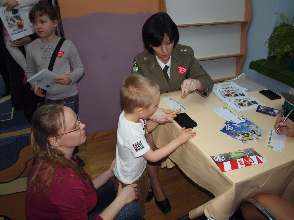 Funkcjonariusze PSG w Olszynie uczestniczyli w 19 finale WOŚP przy sztabie patronackiego przedszkola im. WOŚP nr 3 w Żarach. Start imprezy odbył się o godz.15.00 oficjalnym rozpoczęciem przez Panią Dyrektor Przedszkola. Kącik "zarezerwowany" dla funkcjonariuszy PSG Olszyna cieszył się dużym zainteresowaniem przedszkolaków i ich rodziców, jak również pozostałej społeczności żarskiej, która co roku uczestniczy w finałach WOŚP w przedszkolu patronackim WOŚP. Szczególnym zainteresowaniem cieszył się nasz punkt, gdzie dzieci za symboliczną złotówkę wrzuconą do puszki WOŚP mogły zrobić przy pomocy funkcjonariuszy SG swój pierwszy odcisk palca. Dzieci otrzymywały również pamiątki (foldery, kolorowanki, widokówki) związane z naszą formacją. Ponadto funkcjonariusze przekazali do sztabu przedszkolnego WOŚP dwa zaproszenia na dzień otwarty do Palcówki SG w Olszynie. Licytacja rozpoczęła się o godz. 16.00 na której wylicytowano wspomniane zaproszenia. Zaproszenia zostały wylicytowane przez rodziców dwóch grup przedszkolnych, które odwiedzą naszą placówkę w najbliższym czasie.