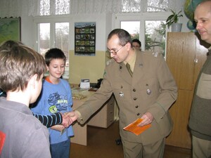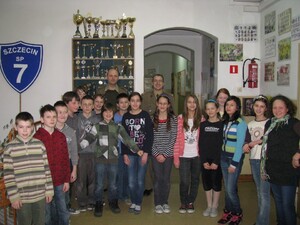20 stycznia b.r. członkowie koła - funkcjonariusze PSG w Szczecinie mjr SG Wojciech Przybyszewski oraz mjr SG Artur Ochał, pragnąc wyróżnić najbardziej aktywnych, młodych turystów wręczyli czterem uczniom odznaki krajoznawczo-turystyczne: „Znam Szczecin” i „Regionalną Odznaką Krajoznawczą” (obie w stopniu brązowym). Odznaki otrzymali uczniowie: Łukasz Jeżewski, Bartosz Augustyniak, Jakub Siemaszko i Krzysztof Ochał. Uroczyste wręczenie odbyło się podczas lekcji wychowawczej prowadzonej przez p. Janinę Wilczyńską a wręczył je mjr SG Wojciech Przybyszewski, członek zarządu Regionalnego Oddziału Szczecińskiego PTTK im. Stefana Kaczmarka.W obecnym roku uczniowie i funkcjonariusze Straży Granicznej również uczestniczyć będą we wspólnych rajdach i wycieczkach, dlatego życzmy im „szerokiego szlaku” i zdobycia kolejnych odznak turystycznych.