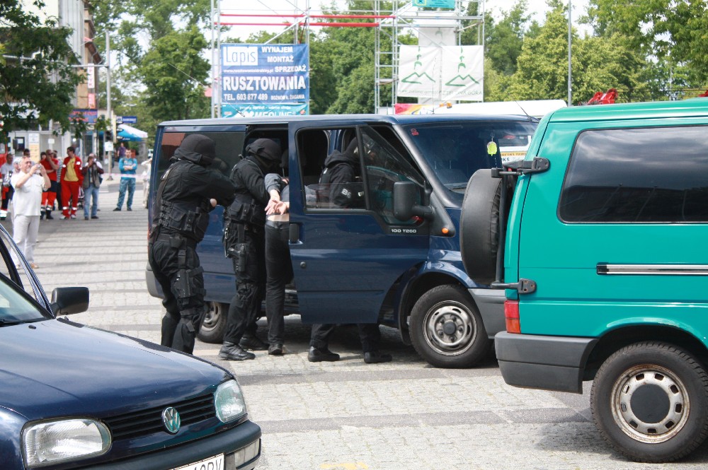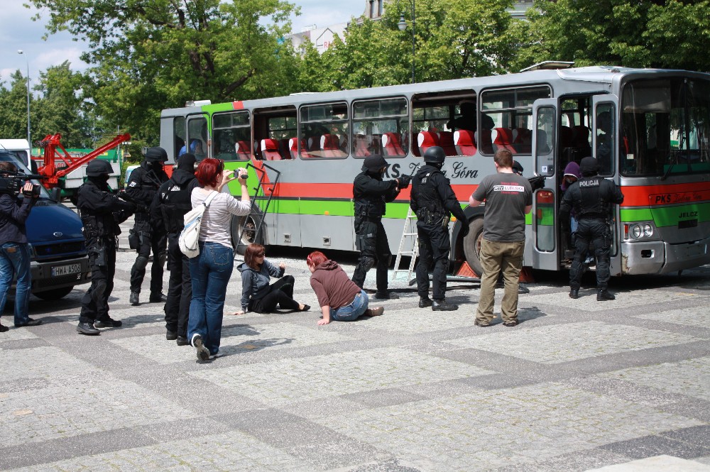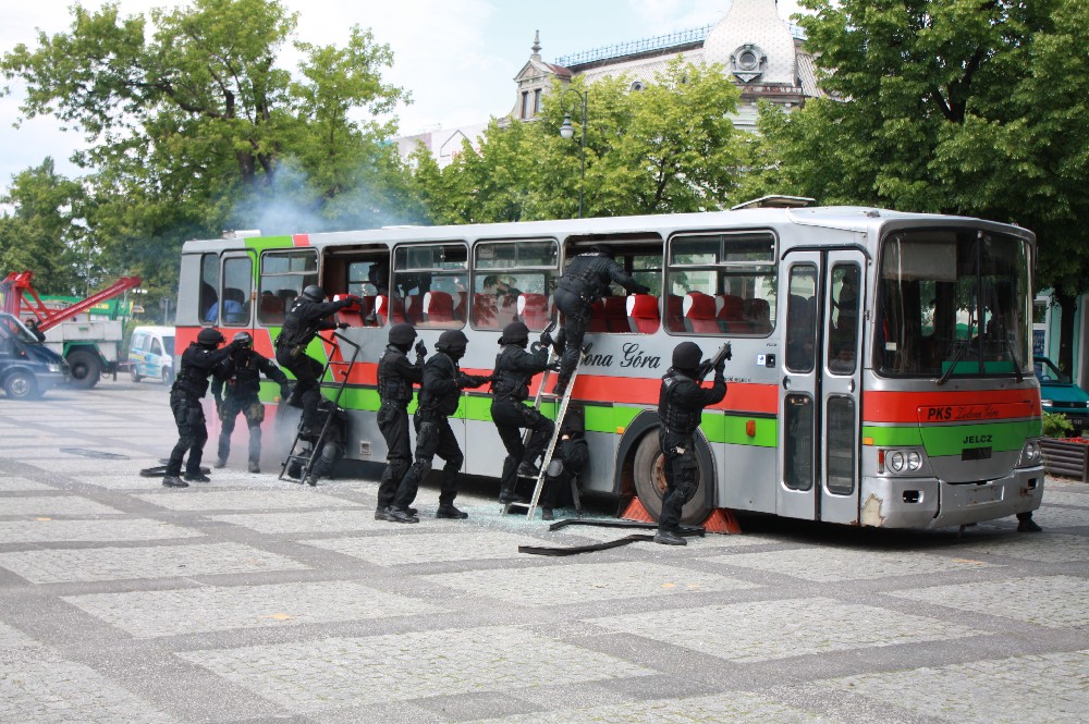W dniu 29 maja 2011 r. o godz. 13.30 na Placu Bohaterów w Zielonej Gorze w ramach "II Zielonogórskich Ćwiczeń Społecznych Służb Ratowniczych" funkcjonariusze Sekcji Wsparcia Działań Operacyjnych Wydziału Techniki Operacyjnej wspólnie z Nieetatową Grupą Realizacyjną Komendy Miejskiej Policji w Zielonej Górze zademonstrowali pokaz dynamiczny o tematyce "Interwencja w środkach komunikacji”. W czasie pokazu przedstawione zostały elementy taktyki, które wykorzystywane są w czasie realizowanych działań. Funkcjonariusze zademonstrowali szturm na autokar w którym osoby szczególnie niebezpieczne posiadające broń palną przetrzymują przypadkowych pasażerów autokaru. Pokaz zakończył się udzielaniem pierwszej pomocy przedmedycznej osobom poszkodowanym.