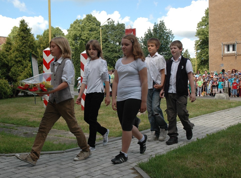 W dniu 10 czerwca 2011 roku na terenie Placówki Straży Granicznej w Szczecinie odbyły się obchody Dnia Patrona i Przyjaciela SP nr 48 im. WOP w Szczecinie. O godz. 9.45 Komendant PSG w Szczecinie pan mjr SG Zbigniew Włodarczyk wraz z Zastępcą Komendanta Placówki panem ppłk. SG Sławomirem Janusem w asyście Prezesa Koła nr 2 Związku Żołnierzy WP im. Pomorskiej Brygady WOP pana ppłk. Andrzeja Selegi oraz Dyrektora SP nr 48 im. WOP Pani Iwony Górskiej przywitał przybyłą na tę uroczystość kadrę kierowniczą placówki, gości, nauczycieli i uczniów SP nr 48. Następnie delegacja dzieci, młodzieży oraz pan Komendant złożyli kwiaty przy obelisku upamiętniającym wszystkich poległych w ochronie granicy państwowej.
