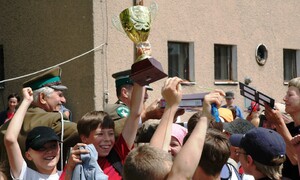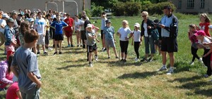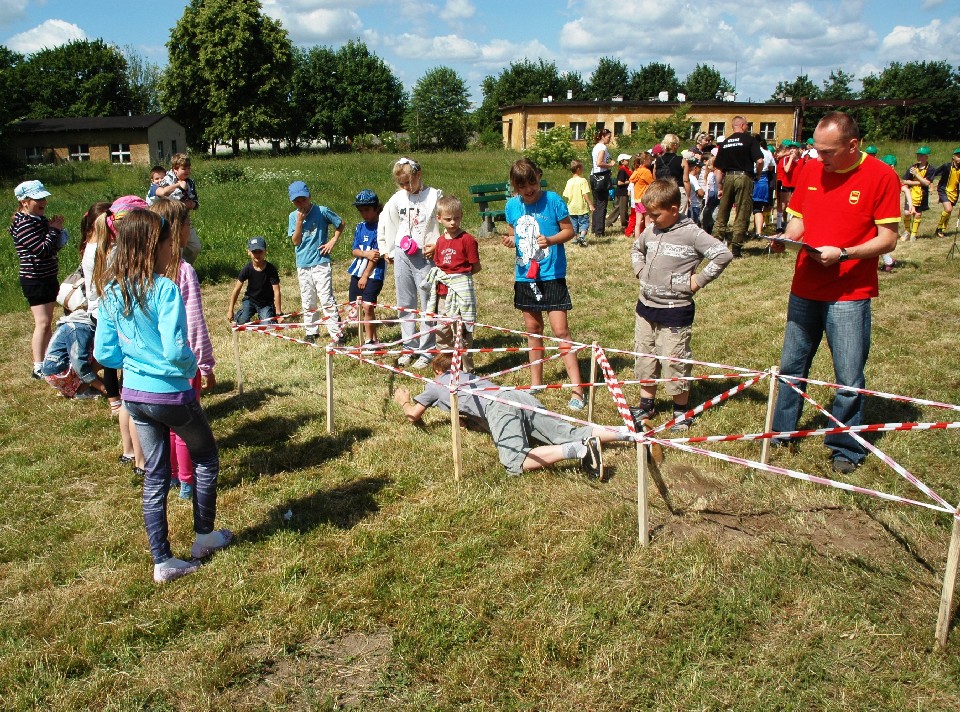 Dalsza część obchodów "Dnia Patrona Szkoły" miała miejsce na boisku sportowym, gdzie uczestnicy imprezy niezależnie od wieku mogli rywalizować w różnego rodzaju przygotowanych konkurencjach sportowo-obronnych. Czteroosobowe drużyny (reprezentanci z poszczególnych 23 przybyłych klas) z ogromnym poświęceniem i w duchu sportowej rywalizacji dokładali wszelkich starań, aby to właśnie w ich ręce trafił niepowtarzalny puchar zwycięzców.