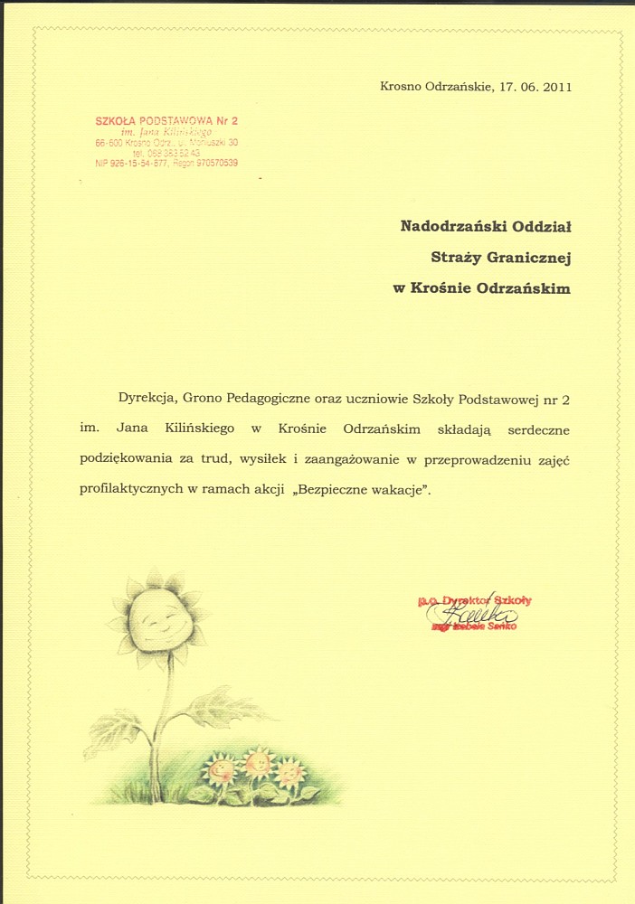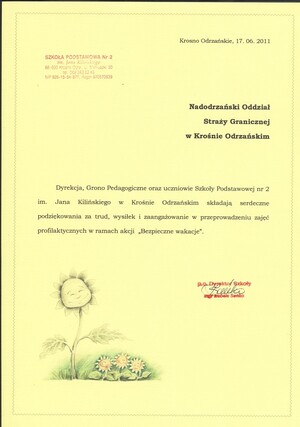 Koniec roku szkolnego i nadchodzący okres upragnionych wakacji to ważny moment by przypomnieć uczniom o kilku zasadach bezpiecznego spędzenia wolnego czasu. Na zaproszenie dyrekcji Szkoły Podstawowej nr 2 w Krośnie Odrzańskim funkcjonariusze Wydziału Koordynacji Działań i Wydziału Prezydialnego spotkali się 14 i 17 czerwca z uczniami, by przypomnieć i utrwalić wiadomości związane z bezpieczeństwem. Dzieci żywo reagowały na pytania o numery alarmowe, zasady zachowania się nad wodą, czy przepisy o ruchu drogowym związane z jazda na rowerze.
