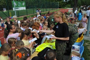 Nie zabrakło również pokazu tresury psów służbowych, informacji o zasadach bezpieczeństwa w kontakcie z psem i postaw obronnych. Dla utrwalenia przekazanej wiedzy rozdano dzieciom foldery o poruszanej tematyce. Każdy mógł również zostawić na specjalnej karcie swój odcisk palca.