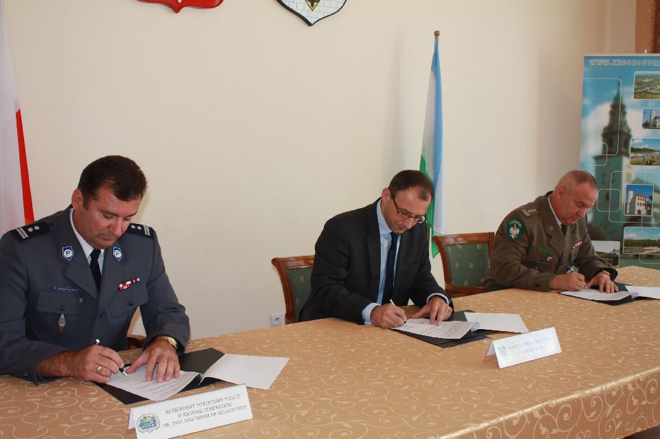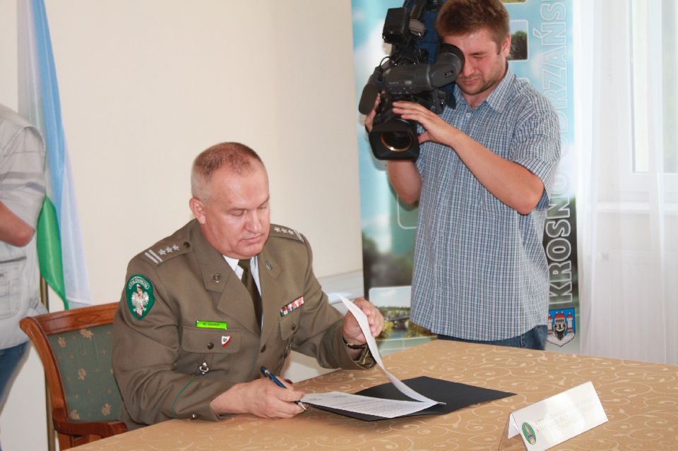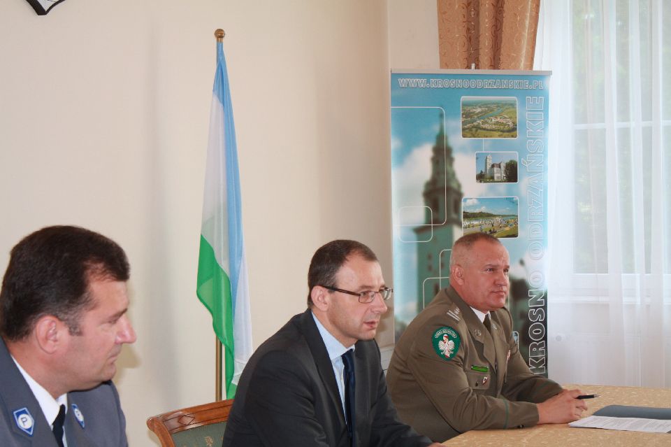 W Urzędzie Miasta w Krośnie Odrzańskim Komendant Nadodrzańskiego Oddziału Straży Granicznej płk SG Michał Kogut i Burmistrz Miasta Krosno Odrzańskie Pan Marek Cebula 25 lipca br. podpisali porozumienie w sprawie szczegółowych zasad współdziałania Straży Granicznej i Straży Miejskiej na wspólnym terenie. Równolegle Burmistrz Miasta podpisał podobne porozumienie z Komendantem Powiatowym Policji w Krośnie Odrz. mł.ins. Mirosławem Kruszelnickim. Podczas spotkania omówiono zakres współpracy i wymiany doświadczeń w zakresie m.in. zapewnienia bezpieczeństwa na terenie miasta i gminy, głównie przygranicznych terenów, oraz przywracania kontroli granicznej na czas trwania mistrzostw EURO 2012. Porozumienie obowiązuje funkcjonariuszy podejmujących działania na terenie będącym w zasięgu terytorialnym obu jednostek.