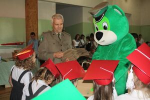 28 września w Szkole Podstawowej im. Lubuskiej Brygady WOP w Dychowie, której patronuje Nadodrzański Oddział Straży Granicznej, odbyło się ślubowanie uczniów klasy pierwszej. Dzieci zaprezentowały program artystyczny i otrzymały wiele podarunków od przybyłych gości z życzeniami na nową drogę. W uroczystości brali udział przedstawiciele NoOSG. Szczególną radość dzieciom sprawiła żywa maskotka, w którą przebrał się nasz funkcjonariusz.
