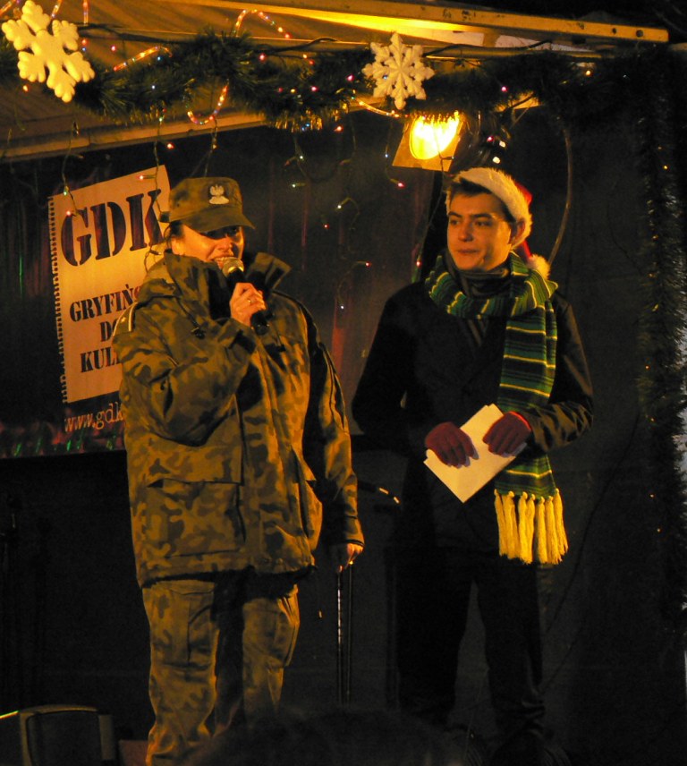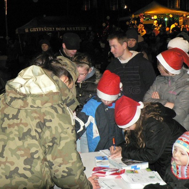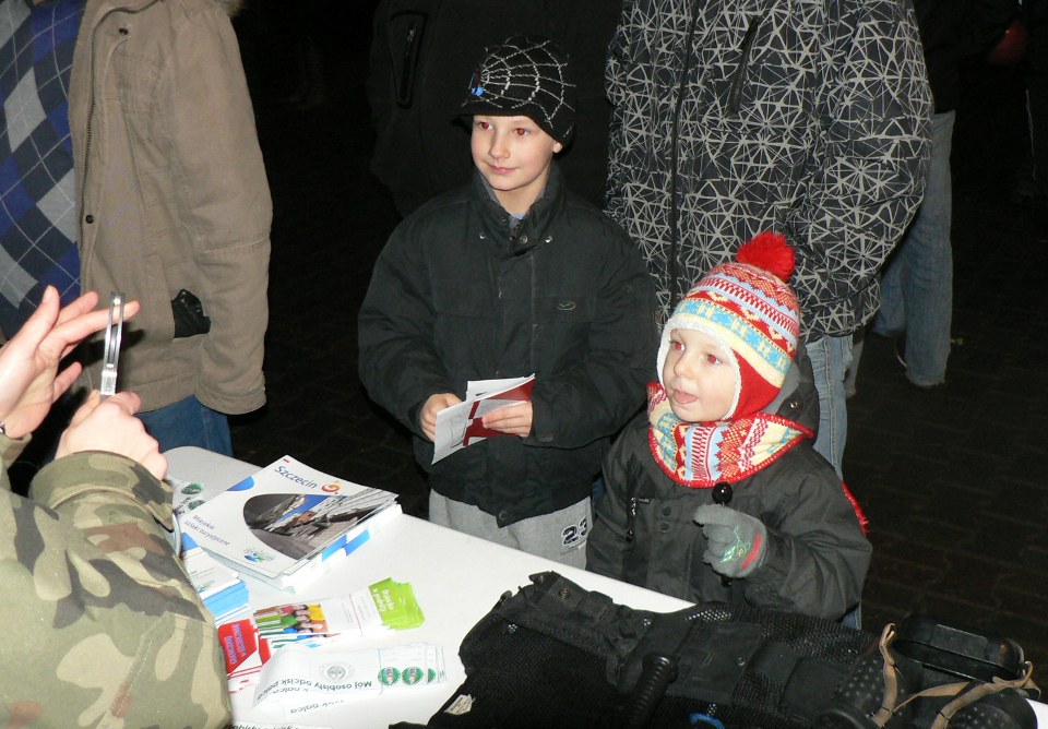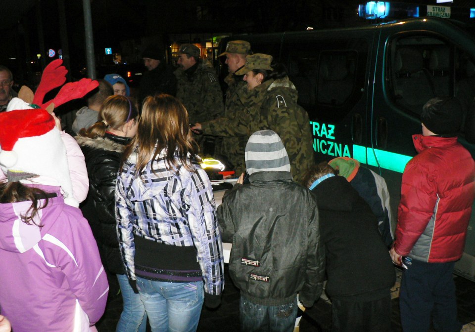 Jak co roku 6 grudnia funkcjonariusze z Placówki Straży Granicznej w Szczecinie uczestniczyli w imprezie pn. ,,Mikołajki na Placu Barnima” zorganizowanej przez władze miasta Gryfino i Gryfiński Dom Kultury. Na uczestników imprezy i tym razem czekało wiele niespodzianek i atrakcji. Soliści i zespoły działające przy gryfińskim Domu Kultury przedstawili ciekawy program artystyczny przygotowany specjalnie na ten dzień. Dorośli wraz ze swymi pociechami mogli wziąć udział w wielu konkursach i zabawach na wesoło, a wspólne pląsy i tańce na świeżym powietrzu wzmacniały gorącą, mikołajkową atmosferę. W oczekiwaniu na przybycie Św. Mikołaja dodatkową atrakcją dla młodszych, i jak się okazało też starszych mieszkańców Gryfina była przygotowana przez naszych funkcjonariuszy prezentacja wybranego sprzęty służbowego wykorzystywanego w codziennej naszej służbie. Na pamiątkę uczestnictwa w imprezie i spotkania się z funkcjonariuszami SG każdy mógł zrobić i zabrać ze sobą swój osobisty odcisk palca. Kończąc swą wizytę w Gryfinie Św. Mikołaj zapewnił wszystkich - ,,Do zobaczenia za rok!”.
