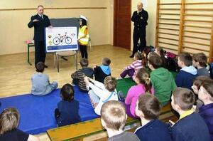 W ramach ogólnopolskiego programu Straży Granicznej pn. "BLASKIEM CHRONIENI”, funkcjonariusze z Placówki Straży Granicznej w Szczecinie wspólnie ze Specjalistami ds. Bezpieczeństwa Ruchu Drogowego Wojewódzkiego Ośrodka Ruchu Drogowego w Szczecinie, Zachodniopomorskim Wojewódzkim Inspektorem Transportu Drogowego oraz Strażnikiem Gminnym (Straż Gminna w Dobrej) przeprowadzili dwutygodniowy cykl spotkań promujących bezpieczne zachowania wśród najmłodszych uczestników ruchu drogowego.