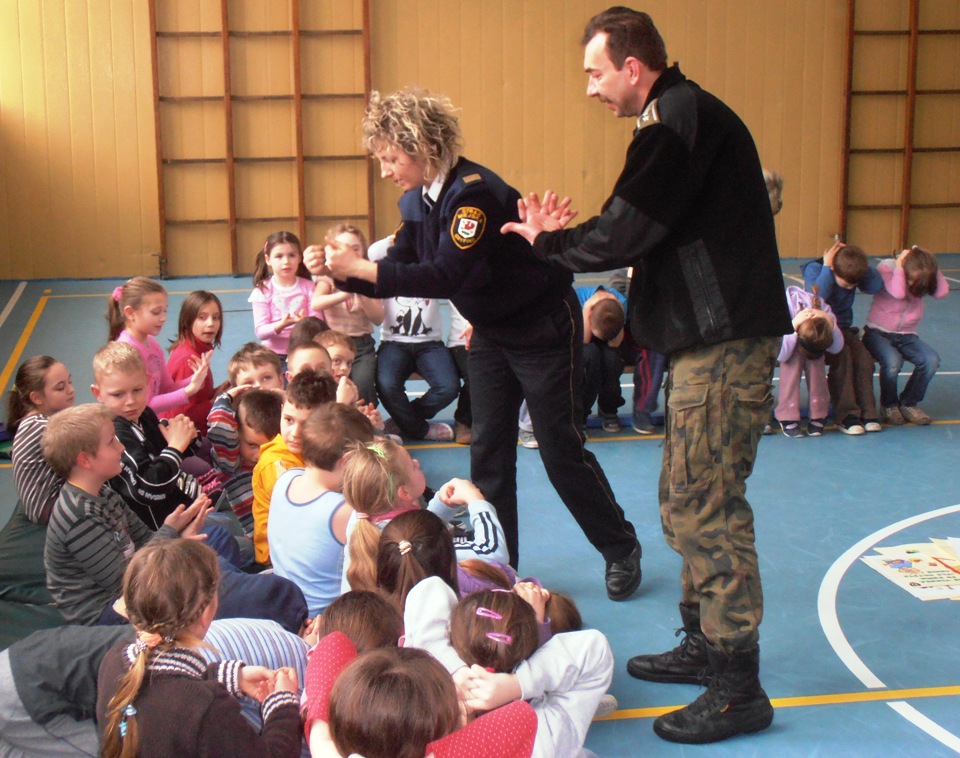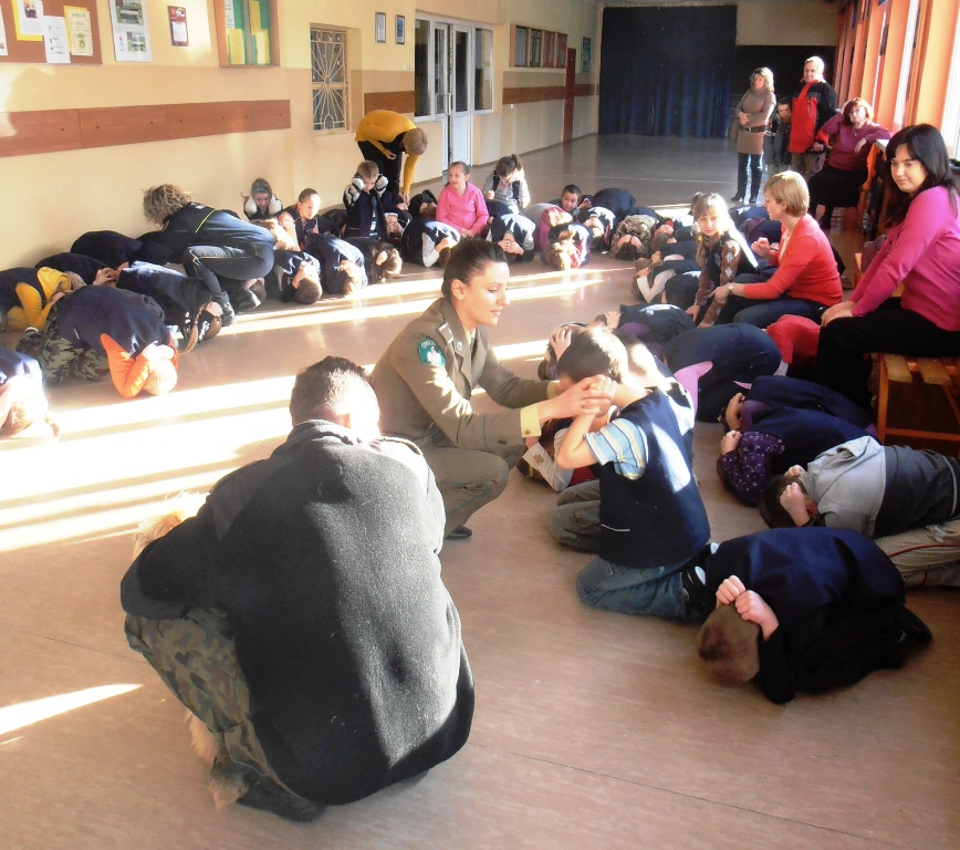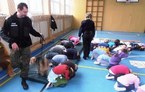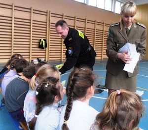 Funkcjonariusze z Placówki Straży Granicznej w Szczecinie w ramach współdziałania z innymi służbami i instytucjami samorządowymi po raz kolejny wsparli program ,,Bezpieczna Gmina Gryfino”. Realizując jedno z wielu założeń programu wspólnie z funkcjonariuszami Straży Miejskiej z Gryfina i Straży Gminnej z Kołbaskowa uczestniczyli w akcji pn. ,,Mój przyjaciel pies 2012”. Zajęcia edukacyjno - profilaktyczne przeprowadzone zostały w II klasach szkół podstawowych z rejonu gryfińskiego. Celem spotkań było przekazanie dzieciom wiedzy na temat odpowiedniego traktowania zwierząt, obowiązków wynikających z ich posiadania oraz podstawowych zasad postępowania w kontakcie z obcym często bezpańskim psem, którego możemy spotkać na naszej drodze do szkoły, domu, sklepu, czy też na spacerze. W trakcie praktycznych zajęć omówione i przedstawione zostały sposoby i bezpieczne postawy obrony przed atakiem psa. Uczniowie z dużą uwagą i zaangażowaniem uczestniczyli w zajęciach, brali czynny udział w dyskusji, jednak największe i niezapomniane wrażenie wzbudził pies służbowy z PSG w Szczecinie. Udział psa służbowego ww. akcji uatrakcyjnił spotkania z dziećmi i pozwolił na dokładniejsze zobrazowanie podejmowanego tematu.