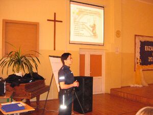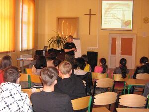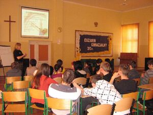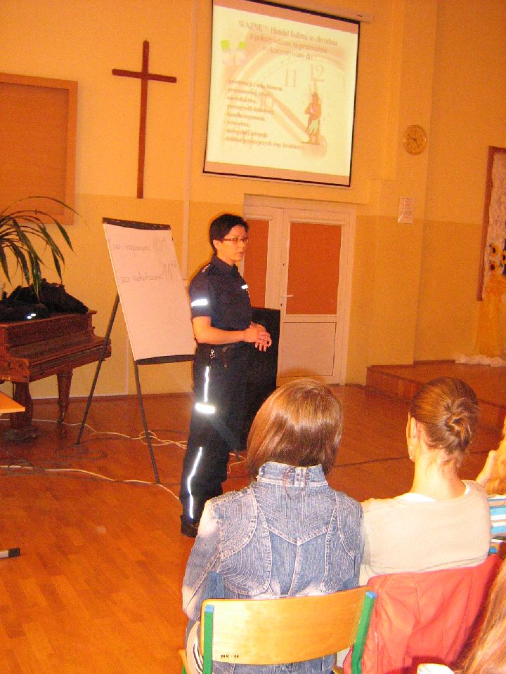 27.04.2012r. koordynator ds. zapobiegania i zwalczania handlu ludźmi Nadodrzańskiego Oddziału Straży Granicznej wraz z funkcjonariuszką Policji zajmującą się przestępczością nieletnich przeprowadziły zajęcia profilaktyczne pt. „Nie wszystko złoto, co się świeci” z młodzieżą Zespołu Szkół Ponadgimnazjalnych w Krośnie Odrz. W spotkaniu uczestniczyły trzy klasy Liceum Ogólnokształcącego, dwie klasy Zespołu Szkół Zawodowych oraz jedna klasa Technikum; łącznie 136 osób. Po przedstawieniu fragmentu filmu ukazującego ofiary handlu ludźmi omówione zostały obszary handlu ludźmi m.in. prostytucja i sex- biznes, praca przymusowa, niewolnictwo, pornografia dziecięca, handel organami, żebractwo, nielegalna adopcja. Następnie analizie poddano powody, dla których młodzież wyjeżdża za granicę oraz możliwości zatrudnienia. Omówiono niebezpieczeństwo, jakie może nieść za sobą praca za granicą oraz czynniki, które powinny wzbudzać niepokój. Główny nacisk położony został na sposoby zminimalizowania ryzyka stania się ofiarą handlu ludźmi;, na odpowiedni sposób postępowania przed i w trakcie wyjazdu (co należy ze sobą zabrać, kogo powiadomić, o czym wiedzieć) oraz na możliwości pomocy, jaka może uzyskać potencjalna ofiara handlu.