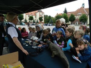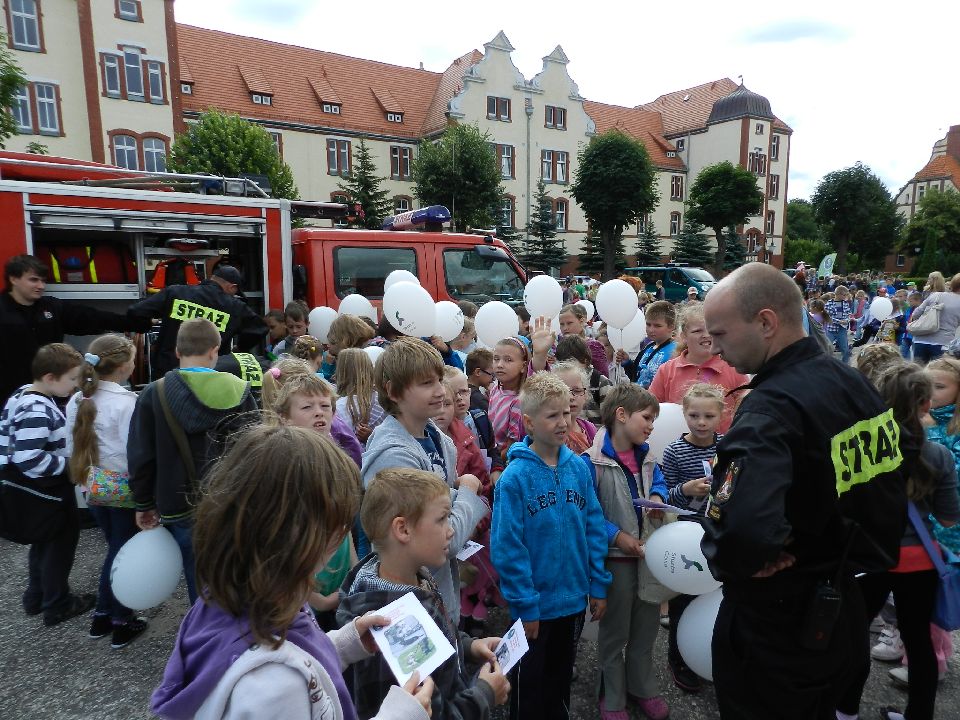25 czerwca w Komendzie Nadodrzańskiego Oddziału Straży Granicznej 6 służb opowiadało ponad 600 dzieciom z okolicznych krośnieńskich szkół podstawowych jak bezpiecznie spędzić wakacje, by po nich wszyscy zdrowi i pełni nowej energii wrócili do nauki w kolejnym roku szkolnym. Na zaproszenie Straży Granicznej w zakresie swojej właściwości dzieci uzyskali fachowe rady od Policji, Służby Celnej, Straży Pożarnej, Straży Miejskiej i Sanepidu. Jednym z punktów był punkt kontrolny Straży Granicznej, w którym dzieci otrzymały pamiątkowe paszporty i dowiedziały się, co potrzebne jest im i ich rodzicom, by podczas wakacyjnych podróży mogli bezpiecznie i zgodnie z przepisami przekraczać granice na całym świecie. Tuż obok funkcjonariusz Straży Granicznej - przewodnik psa służbowego wraz ze swym podopiecznym prezentował postawy obronne wobec zwierząt. Dzięki wyszkolonym w zakresie ratownictwa funkcjonariuszom dzieci powtórzyły wiadomości na temat postępowania z osobami nieprzytomnymi oraz informowania służb o wypadkach. Dzieci były zachwycone możliwością spędzenia kilku chwil w pojazdach Straży Pożarnej i Straży Miejskiej. Nie obyło się bez sygnałów dźwiękowych i świetlnych. Służba Celna zaprezentowała "pamiątki" z podróży, których nie można przewozić - pośród muszli i kłów morsów znalazł się wypchany krokodyl. Policjant przypominał zasady bezpiecznego poruszania się rowerami. A w punkcie Sanepidu można było dowiedzieć się, co należy zrobić, by unikać zakażenia wieloma chorobami, jak np. boleriozą, bąblownicą czy wścieklizną.
