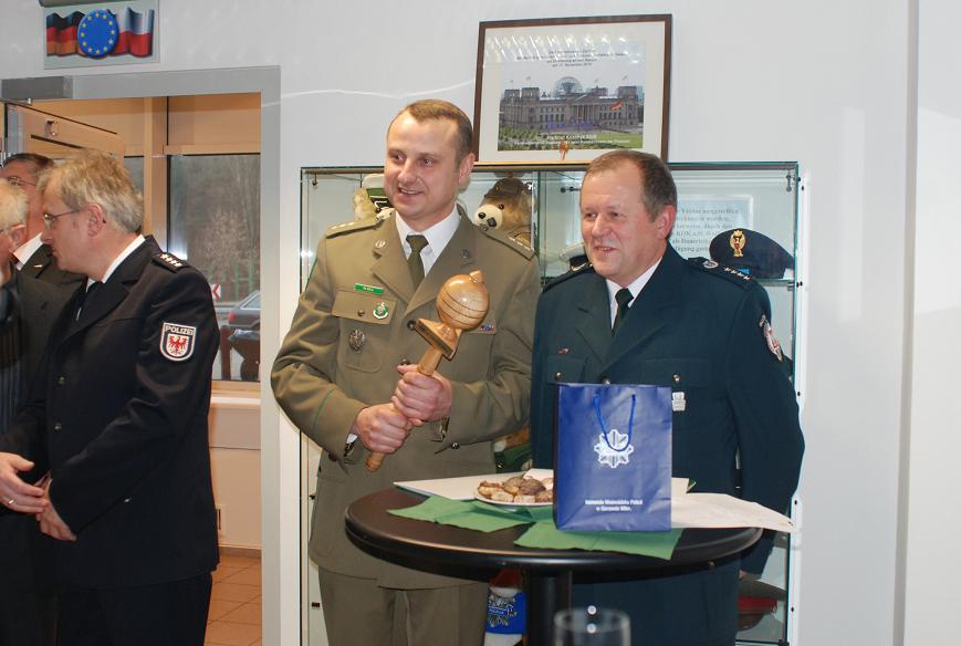 Na uroczystych obchodach tych swoistych urodzin zgromadzonych zostało wielu gości ze służb polskich i niemieckich działających w PNCW. Swoją obecnością uroczystość zaszczyciła również Pani dr Martina Weber z Federalnego Ministerstwa Spraw Wewnętrznych Niemiec. Z ramienia Komendy Głównej Straży Granicznej w Świecku gościliśmy ppłk SG Piotra Patlę i ppłk SG Sławomira Markowskiego z Zarządu Granicznego. Uroczystość ta była również okazją do przekazania koordynacji służb polskich z rąk Służby Celnej dla Straży Granicznej oraz do podpisania porozumienia pomiędzy KWP w Łodzi a Policją Landową Brandenburgii. Uroczystości towarzyszył kwintet klarnetowy Orkiestry Policji Landowej Brandenburgii.