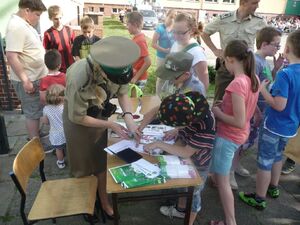 Dużym zainteresowaniem dzieci, młodzieży i dorosłych cieszyły się m.in. możliwość odbicia własnych linii papilarnych na pamiątkowej karcie. Młodsze dzieci otrzymały kolorowanki przedstawiające niektóre zadania SG, pamiątkowe paszporty oraz zakładki do książek. Jak można zauważyć na zdjęciach frekwencja rodziców oraz dzieci była bardzo duża.