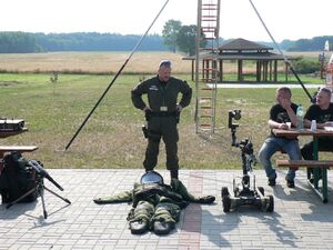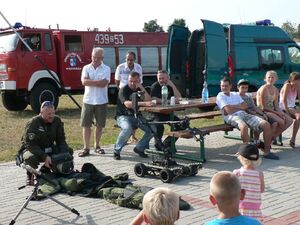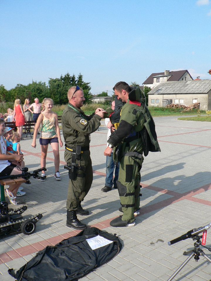 Podczas pikniku dzieci wraz z rodzicami z dużym zainteresowaniem obejrzały prezentację wyposażenia i pracy funkcjonariuszy SG z zespołu interwencji pirotechnicznych oraz zapoznali się z zadaniami Straży Granicznej w zakresie nadzorowania kontroli bezpieczeństwa lotów.