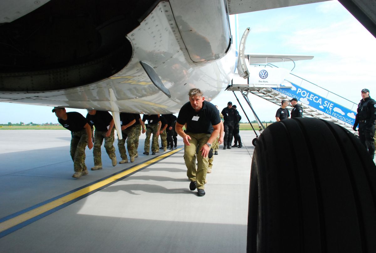 W środę, 11 czerwca 2014 r., na poznańskim lotnisku wspólnie szkolili się funkcjonariusze Wydziału Zabezpieczenia Działań Nadodrzańskiego Oddziału SG oraz Grupy Interwencyjnej Służby Więziennej w Poznaniu.
