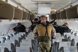 37 funkcjonariuszy Straży Granicznej i Służby Więziennej przeprowadziło wspólne ćwiczenia na pokładzie samolotu.