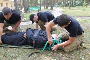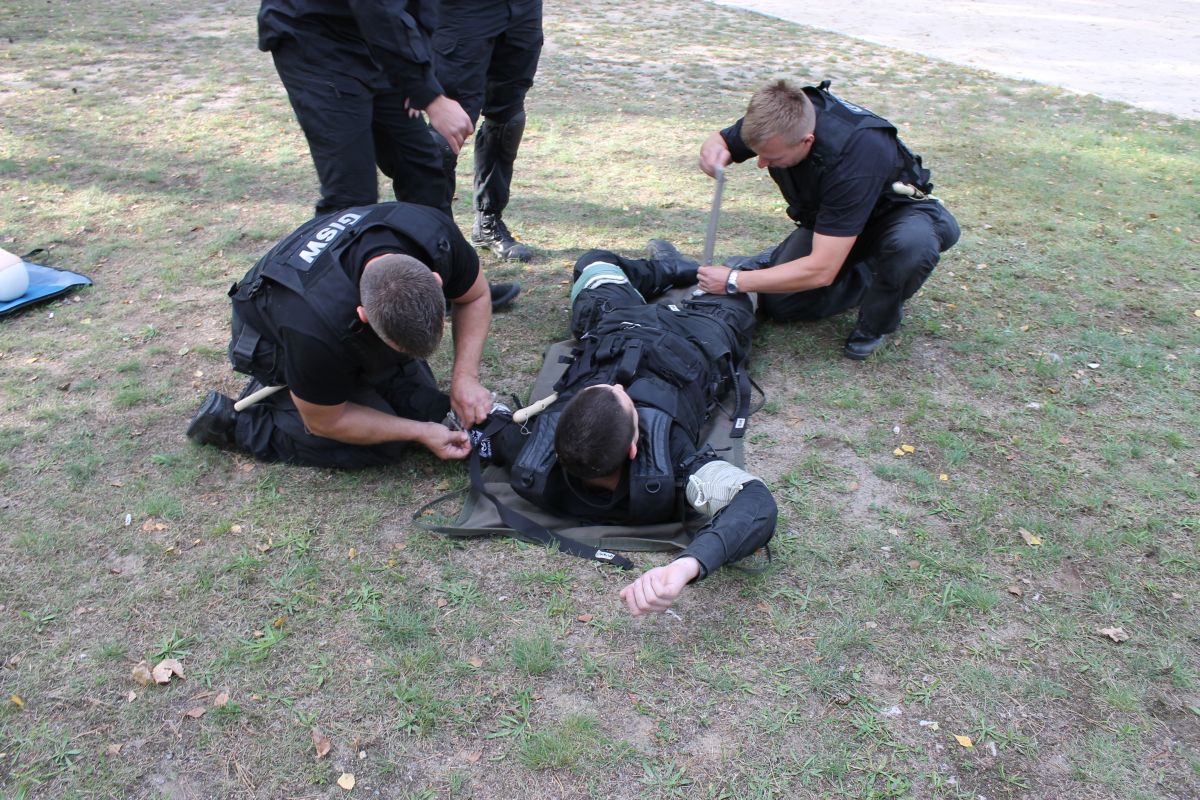 Funkcjonariusze, podczas zajęć praktycznych, doskonalili m.in. udzielanie pierwszej pomocy według standardów TC3 i prowadzenie resuscytacji krążeniowo – oddechowej.