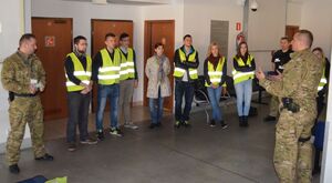 Zwieńczeniem wizyty studyjnej był pokaz sprzętu oraz działania grupy minersko - pirotechnicznej z elementami ratownictwa. Studenci wzięli czynny udział w ćwiczeniach czym zostali zaskoczeni. Funkcjonariusze Straży Granicznej sprawdzali reakcję gości w sytuacjach pozostawienia bagażu na lotnisku i udzielania pierwszej pomocy. Celem ćwiczenia było przede wszystkim zobrazowanie studentom sytuacji zagrożenia, ich reakcji na stres oraz uzmysłowienie, że do sytuacji zagrożeń należy się przygotować. Zachowanie człowieka w takiej sytuacji uzależnione jest od posiadanej wiedzy na temat zagrożeń i umiejętności udzielania pierwszej pomocy.
