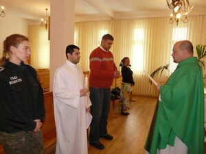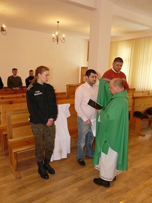 Po zakończeniu katechezy i uzyskaniu stosownych pozwoleń w przededniu wyjścia, tj. 9 lutego o godz. 15.00 w kaplicy Oddziału ks. ppłk SG Mirosław Kurjaniuk udzielił cudzoziemcowi sakramentów inicjacji chrześcijańskiej- Chrztu, Bierzmowania i Komunii św. Rolę świadków- chrzestnych przyjęło na siebie dwoje funkcjonariuszy służących w NoOSG – chor.sztab.SG Grzegorz Blaźniak i chor.SG Magdalena Krasowska. Miejmy nadzieję, ze dobre dzieło, które rozpoczęło się dzięki właściwej postawie Funkcjonariuszy będzie właściwie się rozwijać i przyniesie piękne owoce w życiu Rewaza Muradowa.