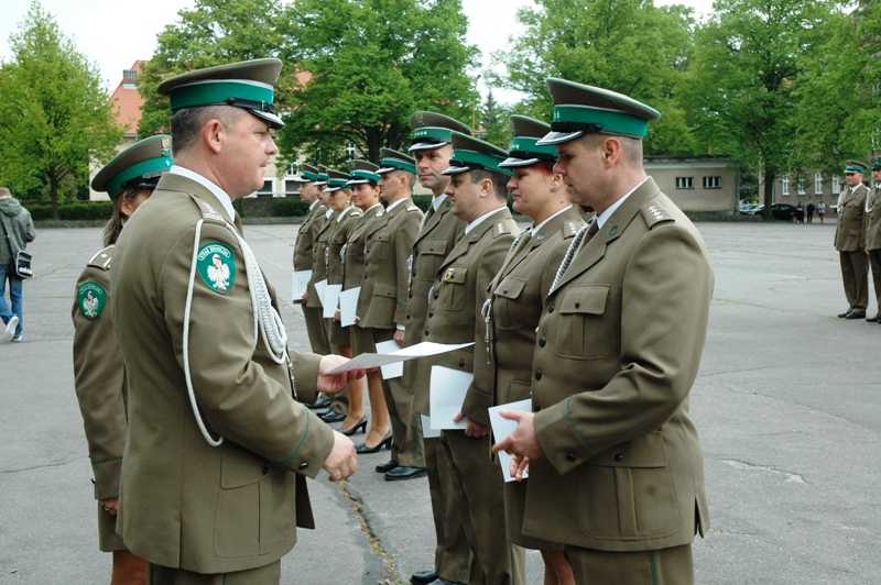 Następnie po odegraniu hymnu państwowego i wciągnięciu flagi na maszt, Komendant Placówki SG ppłk SG Jarosław Burba przywitał obecnych gości, wśród nich Komendanta Wojewódzkiego Policji, PSP, Kierowników Inspekcji BPol z Pasewalk i Angermunde. Po odczytaniu rozkazów o wyróżnieniach i awansach Komendant Oddziału wraz z Komendantem Placówki wręczyli ponad 100 funkcjonariuszom Placówek w Szczecinie, Szczecinie Porcie i Szczecinie Goleniowie Komendanta akty mianowania na wyższe stopnie w korpusie oficerskim, chorążych i podoficerów.Na zakończenie głos zabrał Komendant Oddziału dziękując funkcjonariuszom i pracownikom cywilnym za codzienną służbę i zaangażowanie w trudnym czasie przemian jakie przechodził Nadodrzański Oddział SG. Płk Frączyk z okazji święta SG życzył wyróżnionym i zgromadzonym sukcesów w służbie i życiu osobistym.