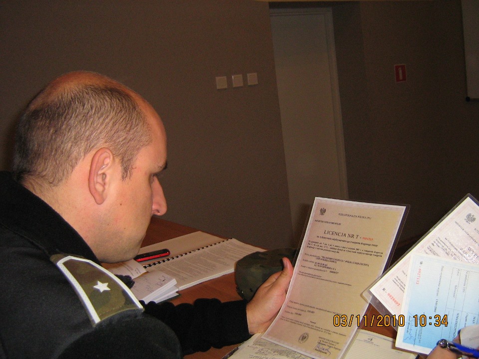 3 listopada 2010r. dla funkcjonariusze Nadodrzańskiego Oddziału Straży Granicznej wzięli udział w szkoleniu z kontroli transportu drogowego, które poprowadzili Dyrektor Biura Obsługi Transportu Międzynarodowego w Warszawie Pan Waldemar Wierzbicki oraz Naczelnik Dariusza Sobieckiego. Szkolenie odbyło się w Komendzie Oddziału w Krośnie Odrzańskim. Podczas szkolenia 36 słuchaczy pogłębiało swą wiedzę związaną z dokumentami, które wymagane są podczas kontroli transportu drogowego, ich fałszerstwami, oraz z zasadami wydawania tych dokumentów. Szkolenie zorganizowane było przy współudziale mjr SG Lidii Cieślik z Zarządu Granicznego KGSG. Wiedza przekazana przez Pana Dyrektora wykorzystywana będzie podczas wykonywania codziennych zadań przez funkcjonariuszy NoOSG.