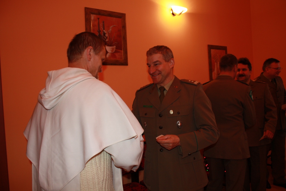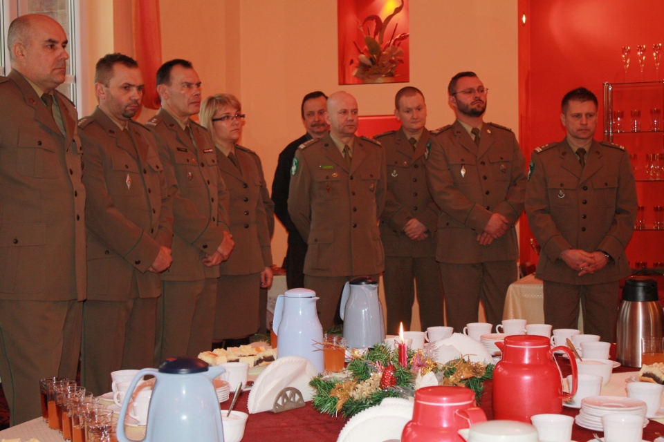 22 grudnia odbyło się spotkanie Wigilijne Komendanta Oddziału płk SG Jarosława Frączyka z kadrą kierowniczą Komendy Nadodrzańskiego Oddziału Straży Granicznej. Spotkanie rozpoczęły modlitwa i życzenia kapelana Oddziału ks. ppłk. SG Mirosława Kurjaniuka oraz o. mjr. Edwarda Olecha. Następnie Komendant podziękował za współpracę, osiągane wyniki, profesjonalizm i gotowość do podejmowania działań kadrze kierowniczej, jednocześnie kierując poprzez nich podziękowania dla wszystkich funkcjonariuszy i pracowników. Życzył również bezpiecznych, spokojnych i rodzinnych świąt oraz dalszych sukcesów zawodowych.