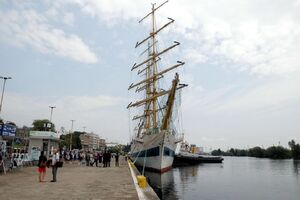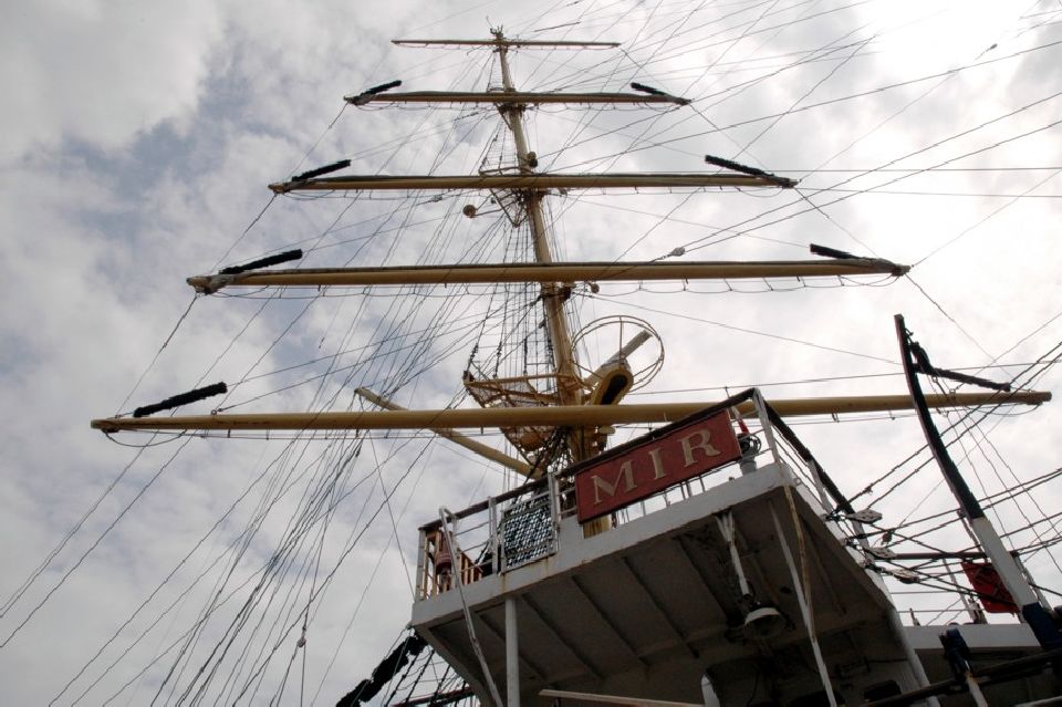 W dniach 20 – 23 maja br. przebywał w Szczecinie z wizytą rosyjski trójmasztowiec „Mir”. Jest to jednostka szkolna zbudowana w stoczni gdańskiej w 1987r. jako jedna z sześciu bliźniaczych jednostek. Najbardziej znaną i rozpoznawaną jednostką „spokrewnioną” z Mirem jest o sześć lat starszy Dar Młodzieży. Statek zaprojektowano jako żaglowiec szkolny mogący zabrać na pokład do 144 kadetów, przy czym pod żaglami szkolona jest młodzież z całej Europy. Prawie 2 800 m2 żagli i niepowtarzalna konstrukcja kadłuba sprawiają, że fregata „Mir” jest uważana za najszybszą tego typu jednostkę na świecie. Portem macierzystym żaglowca jest, Sankt Petersburg.