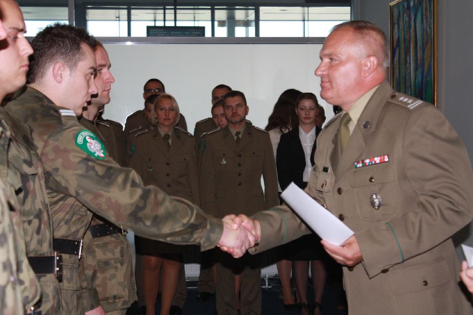 Po zakończonej uroczystości wręczenia mianowań na kolejne stopnie Komendant Oddziału, jego zastępca płk SG Wiesław Rokicki oraz Komendant PSG w Poznaniu – Ławicy ppłk SG Bogdan Sobczak gratulowali funkcjonariuszom ukończenia kursów i życzyli jak najlepszych wyników w służbie, zwracając szczególną uwagę na rolę placówek lotniczych w wykonywaniu zadań powierzonych Straży Granicznej.