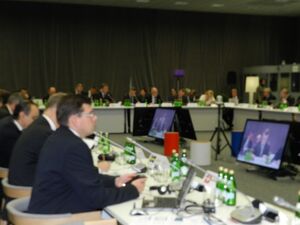 30 listopada br. w ramach kalendarza spotkań związanych z przewodnictwem Polski w Radzie Unii Europejskiej na terenie Międzynarodowych Targów Poznańskich odbyło się 36. posiedzenie Zarządu Agencji FRONTEX, na które przybyli szefowie służb granicznych z 34 państw oraz przedstawiciele Komisji Europejskiej. Łącznie w Poznaniu gościło osiemdziesięciu delegatów. Spotkanie miało na celu omówienie bieżącej sytuacji na granicach zewnętrznych Unii Europejskiej, a jednym z istotnych punktów posiedzenia był wybór nowego przewodniczącego i zastępcy przewodniczącego Zarządu. W obradach uczestniczyli Komendant Główny SG gen.bryg. SG Leszek Elas i Dyrektor BWM KGSG mjr SG Aleksandra Świątecka. Spotkanie organizowało Biuro Współpracy Międzynarodowej KGSG wspierane wieloma siłami i środkami przez Nadodrzański Oddział Straży Granicznej.
