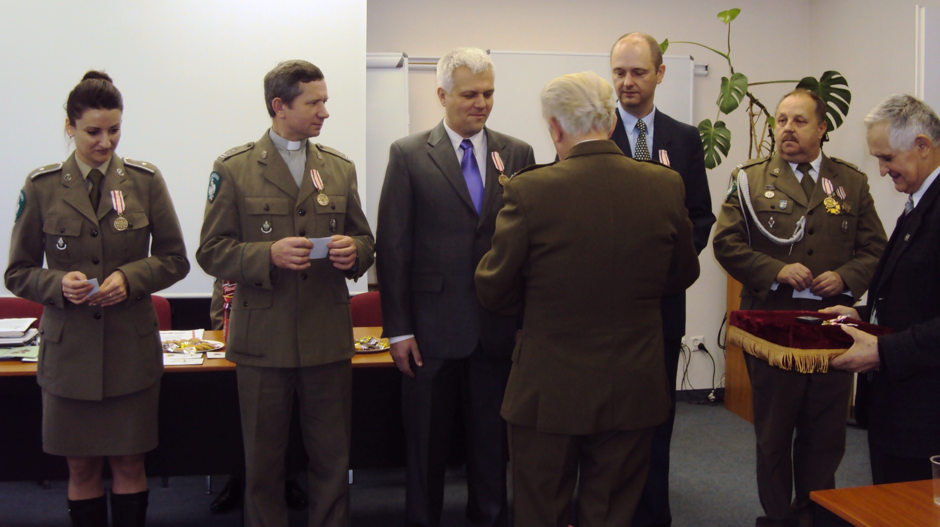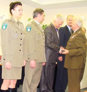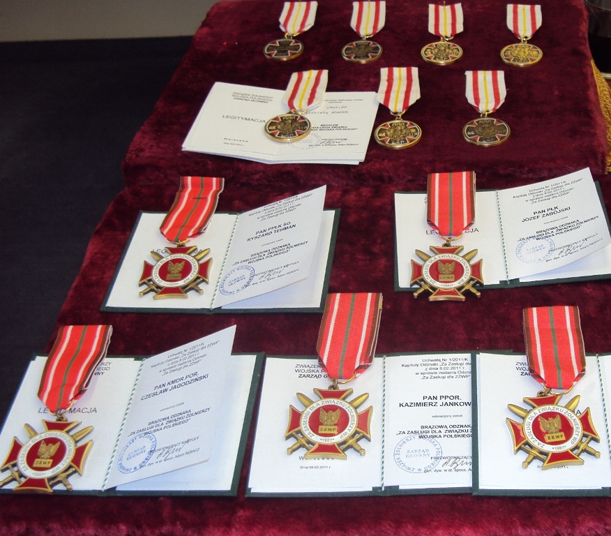 W ubiegłą sobotę (10 grudnia br.) w sali konferencyjnej Archiwum Straży Granicznej w Szczecinie odbyło się posiedzenie podsumowujące rok pracy Zarządu Koła nr 2 Związku Żołnierzy Wojska Polskiego im. Pomorskiej Brygady WOP w Szczecinie. Po przywitaniu członków koła i przybyłych gości Prezes Koła nr 2 ZŻWP w Szczecinie Pan ppłk w st. spocz. mgr Andrzej Selega wręczył medale i odznaczenia osobom zasłużonym dla działalności koła. Brązowym Krzyżem Zasługi dla Związku Żołnierzy Wojska Polskiego odznaczony został min. Kierownik Archiwum SG w Szczecinie płk SG dr Ryszard TECHMAN. Medalem XXX- lecia Związku Żołnierzy Wojska Polskiego odznaczeni zostali min. Kapelan NoOSG ks. ppłk SG Ryszard ROZDEBA, Naczelnik Wydziału Prezydialnego NoOSG kpt. SG Piotr WOJTUNIK oraz członek Nieetatowego Zespołu ds. Komunikacji i Promocji NoOSG z PSG w Szczecinie chor. SG Elżbieta Adamus.