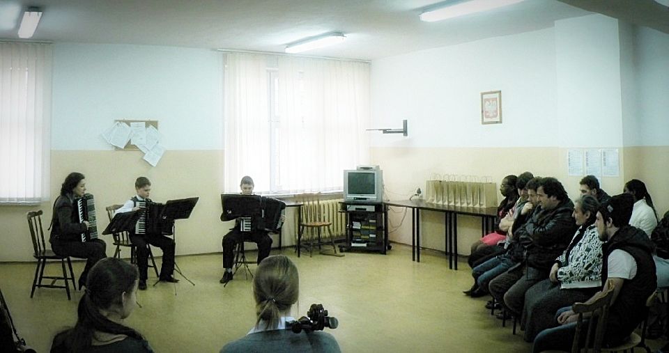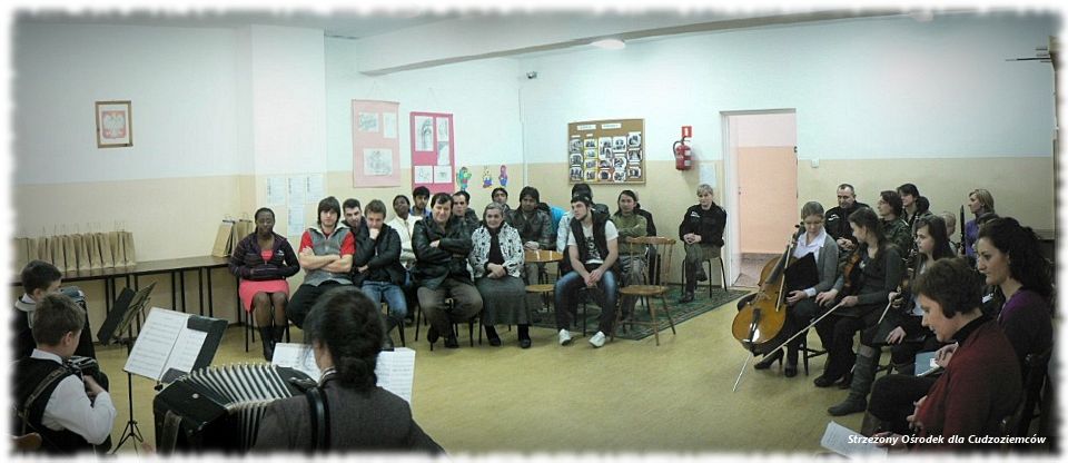 7 lutego 2012r. w Strzeżonym Ośrodku dla Cudzoziemców miał miejsce koncert uczniów z Państwowej Szkoły Muzycznej I stopnia w Krośnie Odrzańskim, którzy zaprezentowali swe talenty pod czujnym okiem Pani Renaty Lato - dyrektor Szkoły. Koncert został zorganizowany w ramach zajęć kulturalno - oświatowych, które codziennie prowadzą wykładowcy ze SOdC. Tak wysoce kulturalne wydarzenie nie zdarza się w Ośrodku co dzień i sprawia cudzoziemcom ogromną radość. Powiedzenie "muzyka łagodzi obyczaje" i w tym przypadku może być adekwatne. W Ośrodku przebywają osoby o różnych narodowościach i kulturach. Jednak muzyki słuchają z jednakową wrażliwością. Pierwszy koncert w SOdC w Krośnie dzieci zagrały w czerwcu 2011r. podczas obchodów Dnia Uchodźcy. Spotkał on się z ogromnym aplauzem, co spowodowało, że teraz stanie się stałym elementem zajęć, bowiem dzieci od lutego br. raz w miesiącu zagrają dla cudzoziemców czasowo umieszczonych w Strzeżonym Ośrodku w Krośnie Odrzańskim.