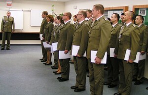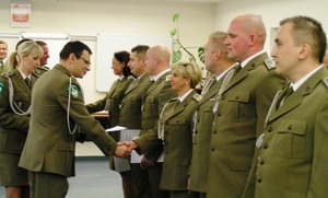 15 maja br. w ramach uroczystości obchodów XXI lecia Straży Granicznej w pomieszczeniach Archiwum SG, w obecności Kadry Kierowniczej z PSG w Szczecinie Zastępca Komendanta NoOSG Pan płk SG Wiesław Rokicki wręczył akty mianowań na kolejne stopnie Straży Granicznej. Pan płk SG Wiesława Rokickiego w asyście Komendanta Placówki SG w Szczecinie mjr. SG Zbigniewa Włodarczyka, Komendanta PSG w Szczecinie-Goleniowie mjr. SG Jerzego Grzymskiego i Komendanta Placówki SG w Szczecinie- Porcie ppłk. SG Bernarda Szymkowiaka wręczył akty mianowań funkcjonariuszom z trzech ww. placówek. Po uroczystym wręczeniu aktów mianowań Pan Zastępca Komendanta NoOSG złożył wszystkim zgromadzonym funkcjonariuszom gratulacje, podziękowania za dotychczasową służbę oraz życzył dalszej satysfakcji i kolejnych awansów w służbie. Na zakończenie spotkania głos zajął ppłk w stanie spoczynku Andrzej SELEGA Prezes Miejskiego Koła ZWiR WP. Z okazji Święta Straży Granicznej życzył funkcjonariuszom wytrwałości w służbie, szczęśliwych powrotów ze służby do domu oraz podziękował za codzienny trud służby narodowi polskiemu.