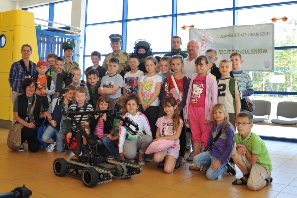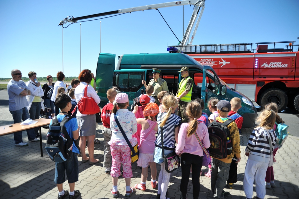 Na specjalne zaproszenie funkcjonariuszy gośćmi Placówki byli uczniowie ze szkół Podstawowych z Przybiernowa, Nowogardu oraz Goleniowa. Grupa licząca ponad 100 uczniów przez kilka godzin zgłębiała tajniki służby funkcjonariuszy w lotniczym przejściu granicznym. W specjalnie przygotowanych punktach pokazowych funkcjonariusze prezentowali sprzęt służbowy oraz czynności związane z zadaniami jakie na co dzień wykonują. Grupa Bezpieczeństwa Lotów prezentowała sprzęt służący do ochrony i neutralizacji niebezpiecznych bagaży i pakunków... Odbył się pokaz z zakresu tresury psa służbowego. Przewodnik psa służbowego przekazał uczniom cenne wskazówki w związku ze zbliżającymi się wakacjami oraz wskazówki związane z kontaktem z agresywnymi zwierzętami.